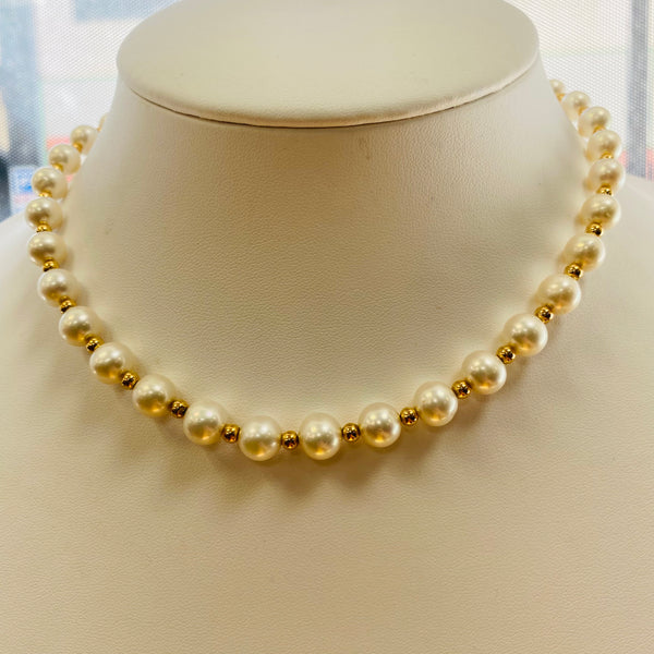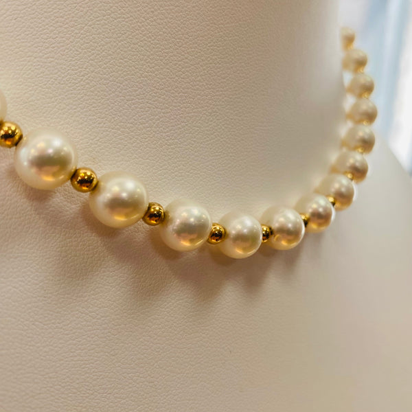 Collier Ras du Cou en Or Jaune 18 Carats avec Perles et Boules