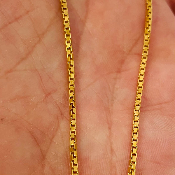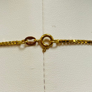 Cette chaîne ras du cou en or jaune 18 carats (750/1000), poinçonnée 750, est un bijou élégant et intemporel. Avec un poids de 6,5 grammes et une longueur de 40 cm, elle allie finesse et solidité. Sa maille vénitienne raffinée, d’une largeur et d’une épaisseur de 2 mm, offre un éclat discret et sophistiqué.