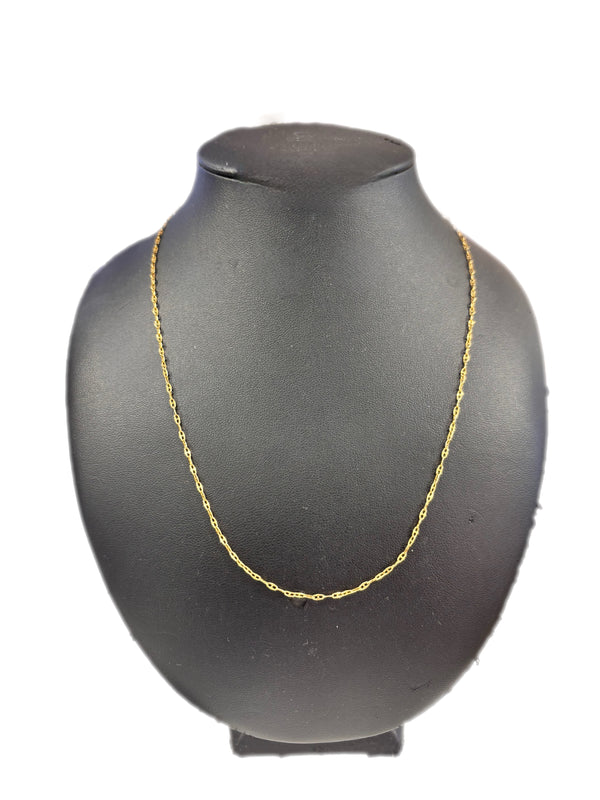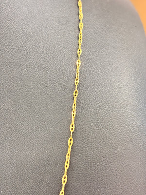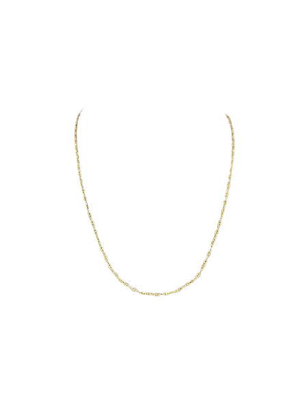 Sautoir en or jaune 18 carats (750/1000) à maille marine, sans poinçon, muni d’un fermoir à anneau ressort. Longueur : 47 cm ; largeur : 0,1 mm ; épaisseur : 0,2 mm. Poids : 2,60 g. Sans pierre. Très bon état.