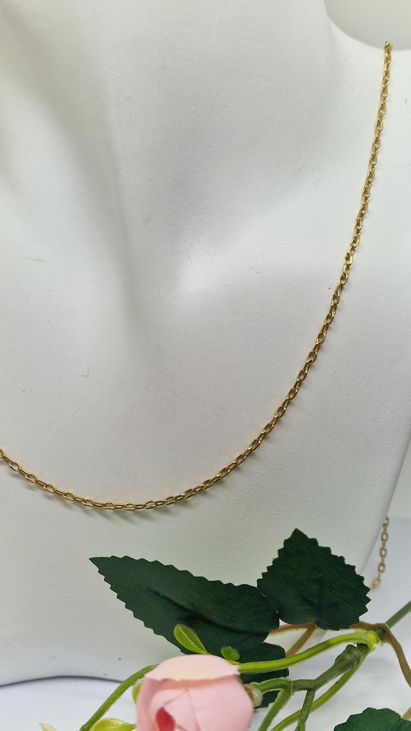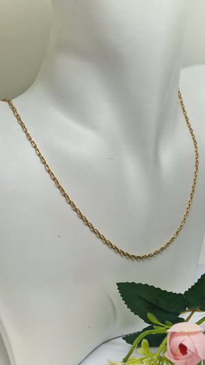 Sautoir en or jaune 18 carats (750/1000) à maille forçat, sans poinçon, équipé d’un fermoir à anneau‑ressort. Longueur : 74 cm – largeur et épaisseur : 2 mm. Poids : 9,57 g. Sans pierre. Très bon état.