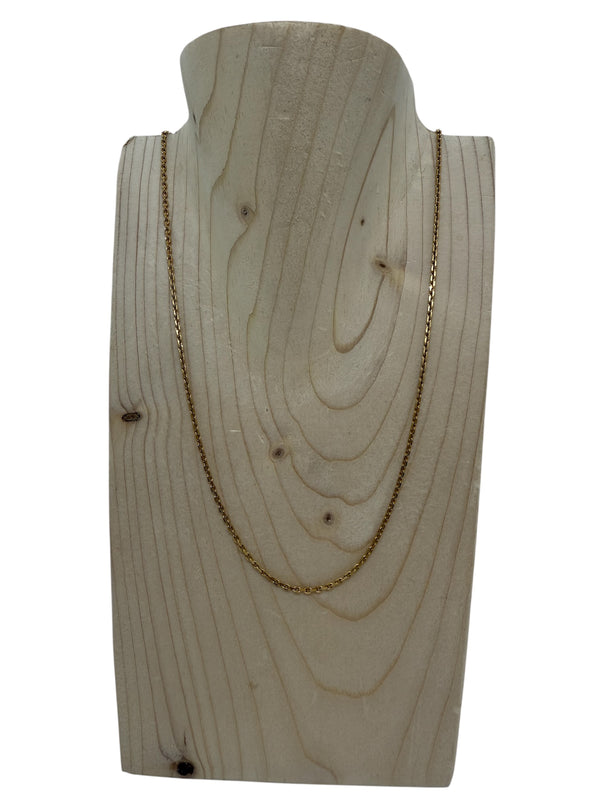 Collier en très bon état de type sautoir est réalisé en or jaune 18K (750/1000) avec une maille forçat élégante et fine. Il est doté d’un fermoir à anneau ressort et ne présente pas de poinçon visible. Mesurant 27 cm de long pour 1 mm de largeur et d’épaisseur, il pèse 5.94 grammes et ne comporte aucune pierre.