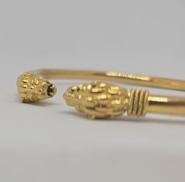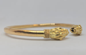 Beau bracelet jonc tête de lion en or jaune 18 carats.Pour apprivoiser la bête qui dors en vous.