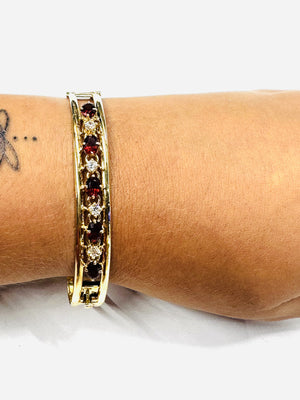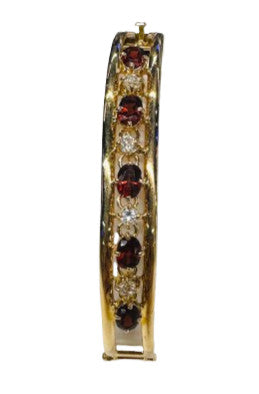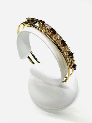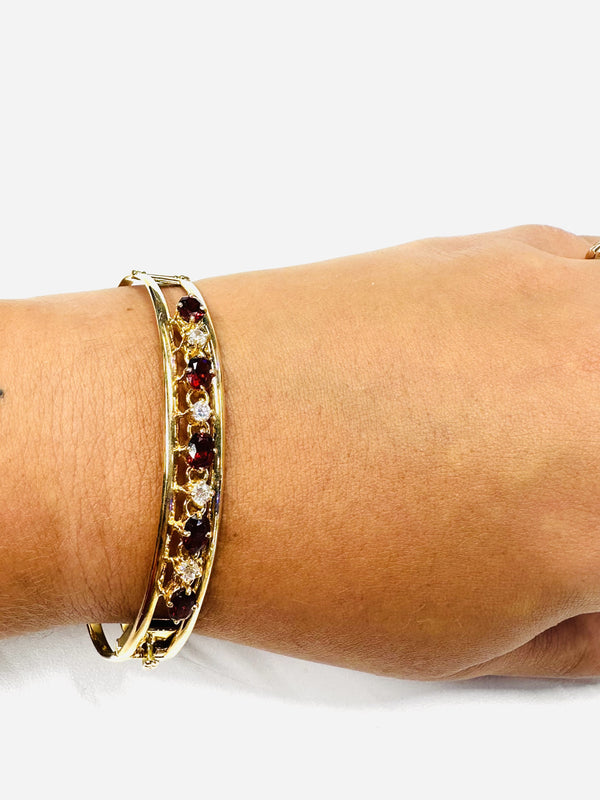 Magnifique bracelet jonc en or jaune 18k zirconiums et grenats