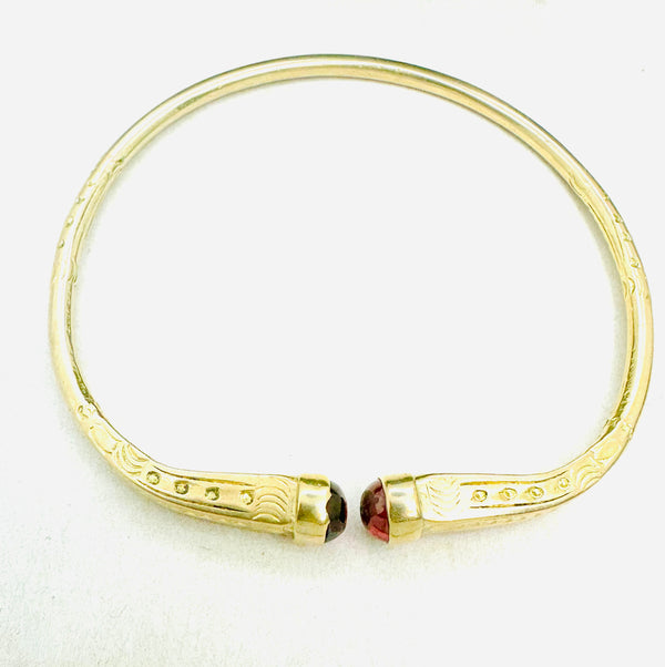 • Jonc malgache en Or jaune 18K et pierres rouges