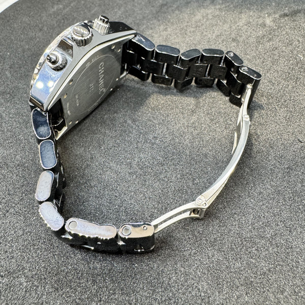 La beauté se retrouve dans cette montre raffinée, qui présente un boîtier en céramique et un bracelet en harmonie avec celui-ci.
