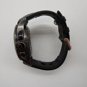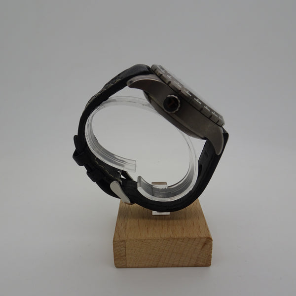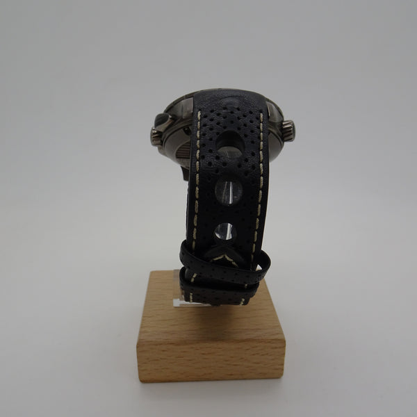 Dotée d’un boîtier en acier inoxydable de 46 mm, cette montre embarque un mouvement automatique fiable avec chronographe et fonction GMT World Time, permettant de suivre plusieurs fuseaux horaires en un coup d’œil. Son cadran technique, agrémenté de touches de rouge et d’éléments inspirés des instruments de bord, renforce son caractère unique.