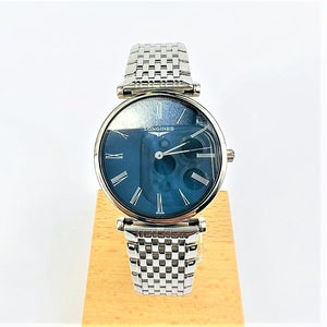 Ravissante montre femme Longines La Grande Classique chic. Coup de cœur assuré de par son esthétique, son charme et de ses couleurs bleu nuit et argenté.