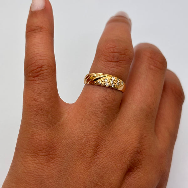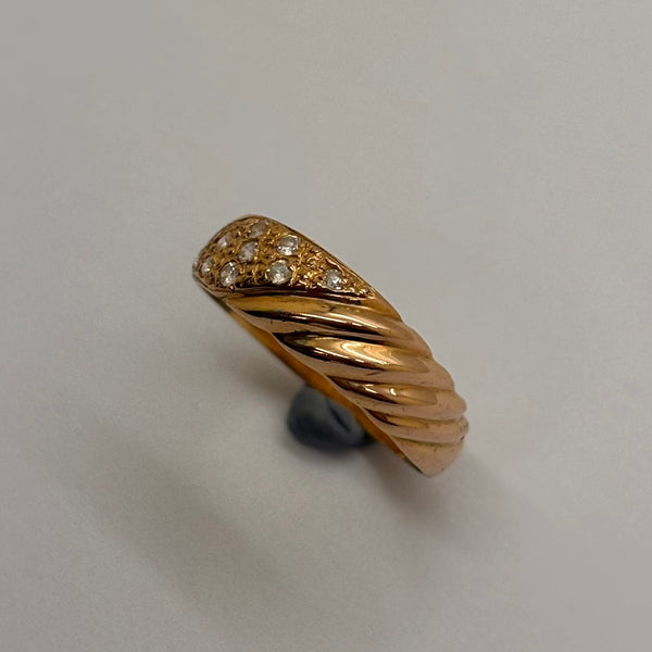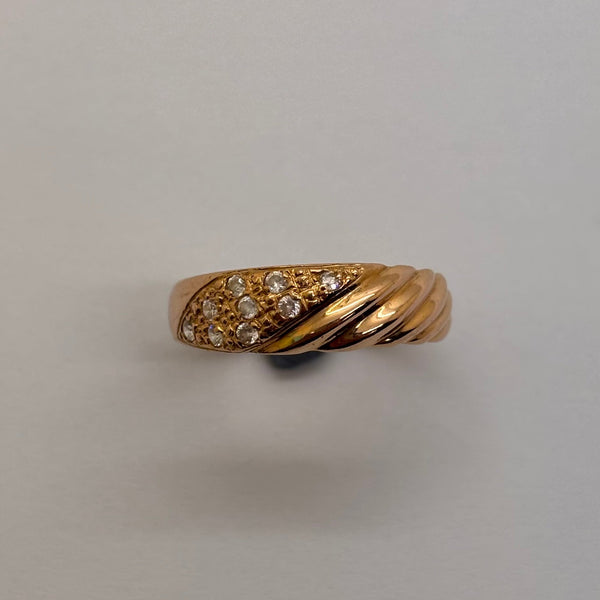 Belle alliance en or jaune 18 carats (750/1000), sertie de neufs petits zircons.
