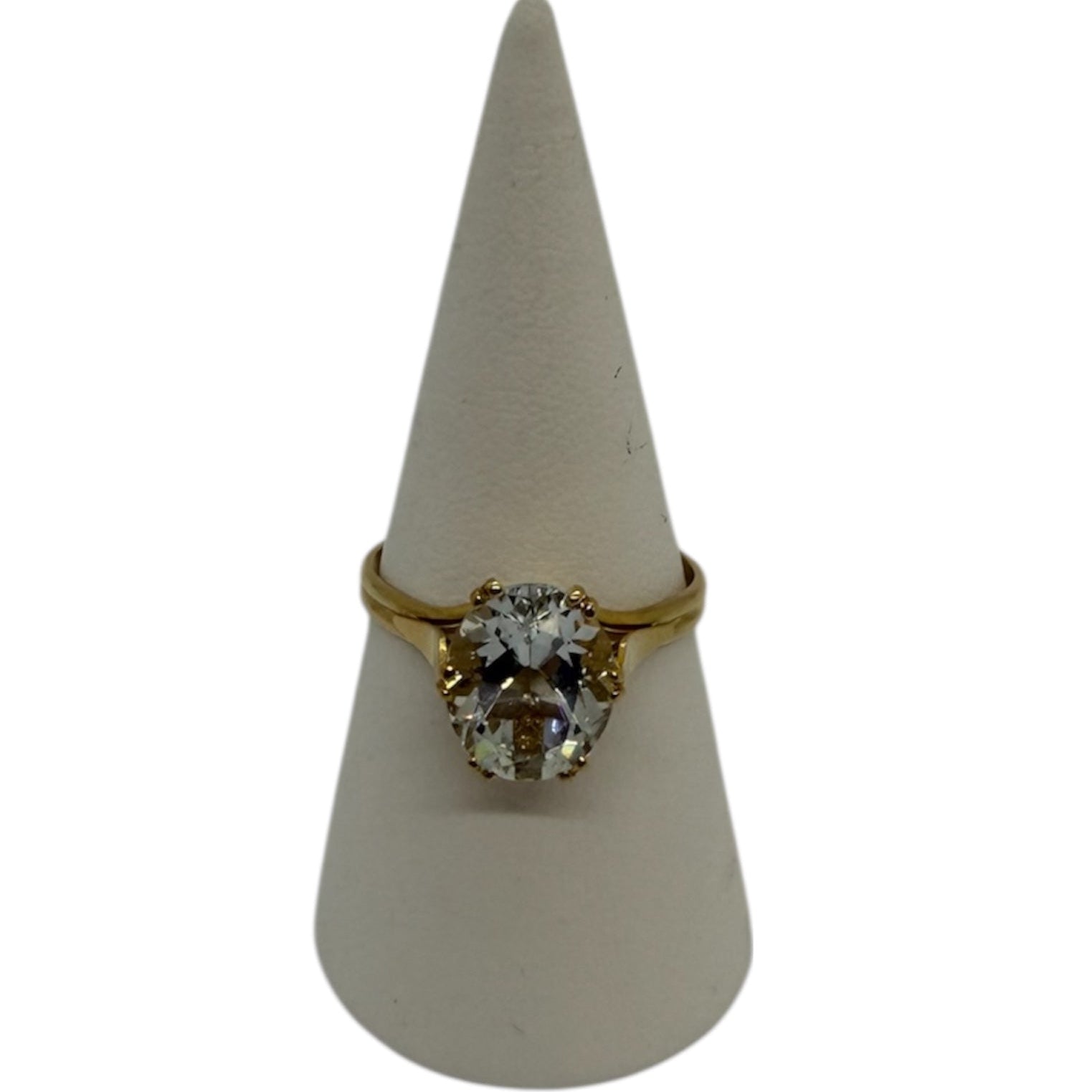 Bague alliance, solitaire et empierrée en or jaune 18K, taille 58, poids 3,58 g, sertie d’une aigue-marine de 3,85 ct.