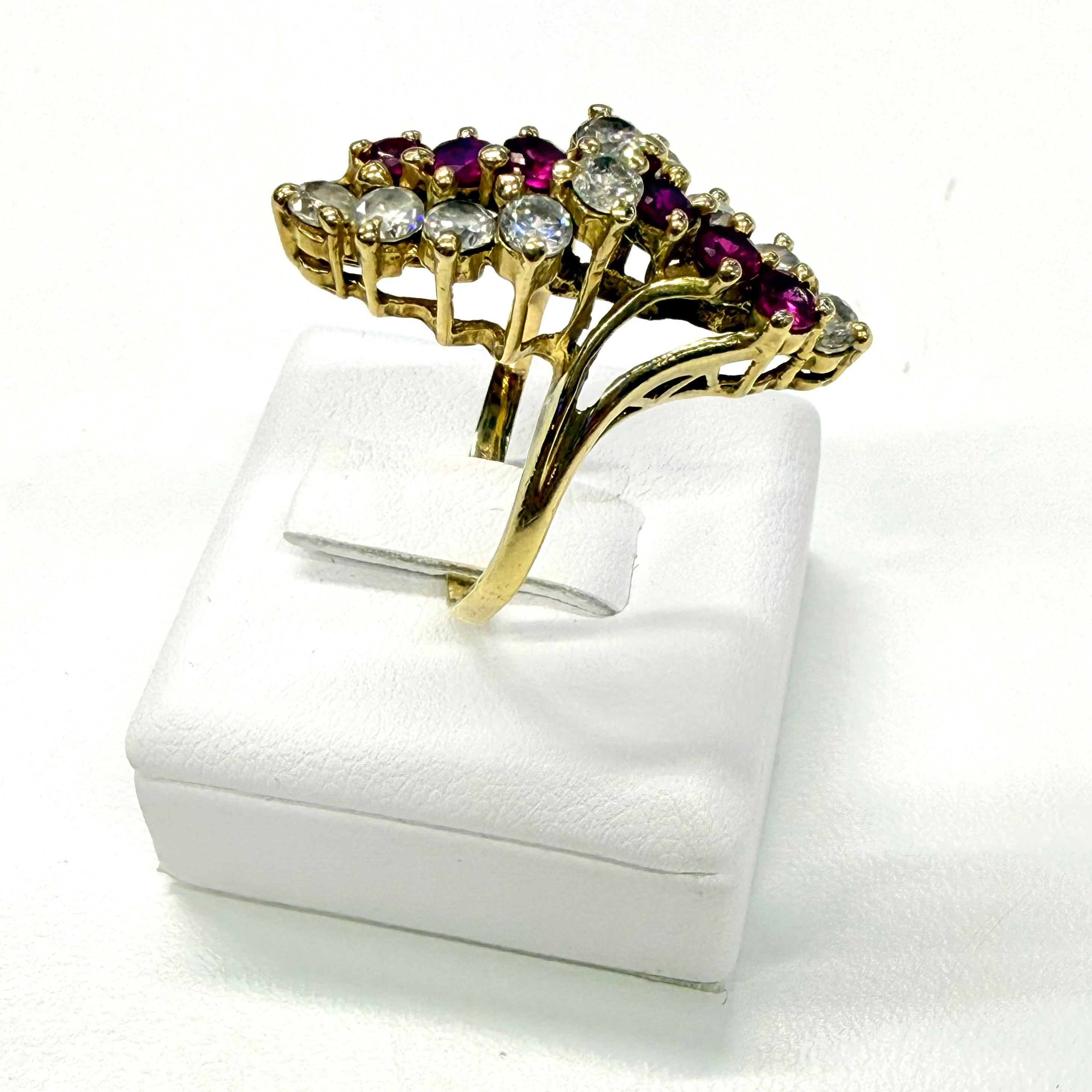 Cette bague en or jaune 750/1000, taille 52 et d’un poids de 5,92 g, est agrémentée de six rubis et dix oxydes de zirconium. Sans poinçon et en très bon état, elle constitue une pièce élégante et raffinée.