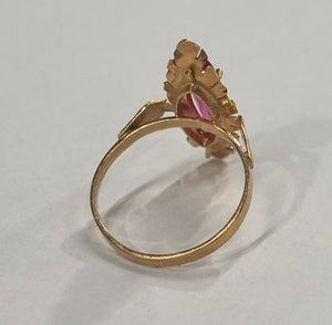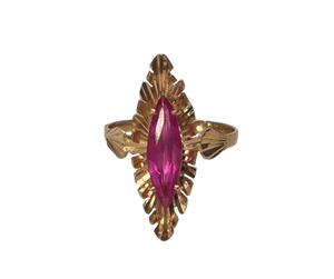 Bague de type marquise en or jaune 18 carats (750/1000), sans poinçon, pesant 2,45 g. Taille 52. Sertie d’un oxyde de zirconium unique. Très bon état.