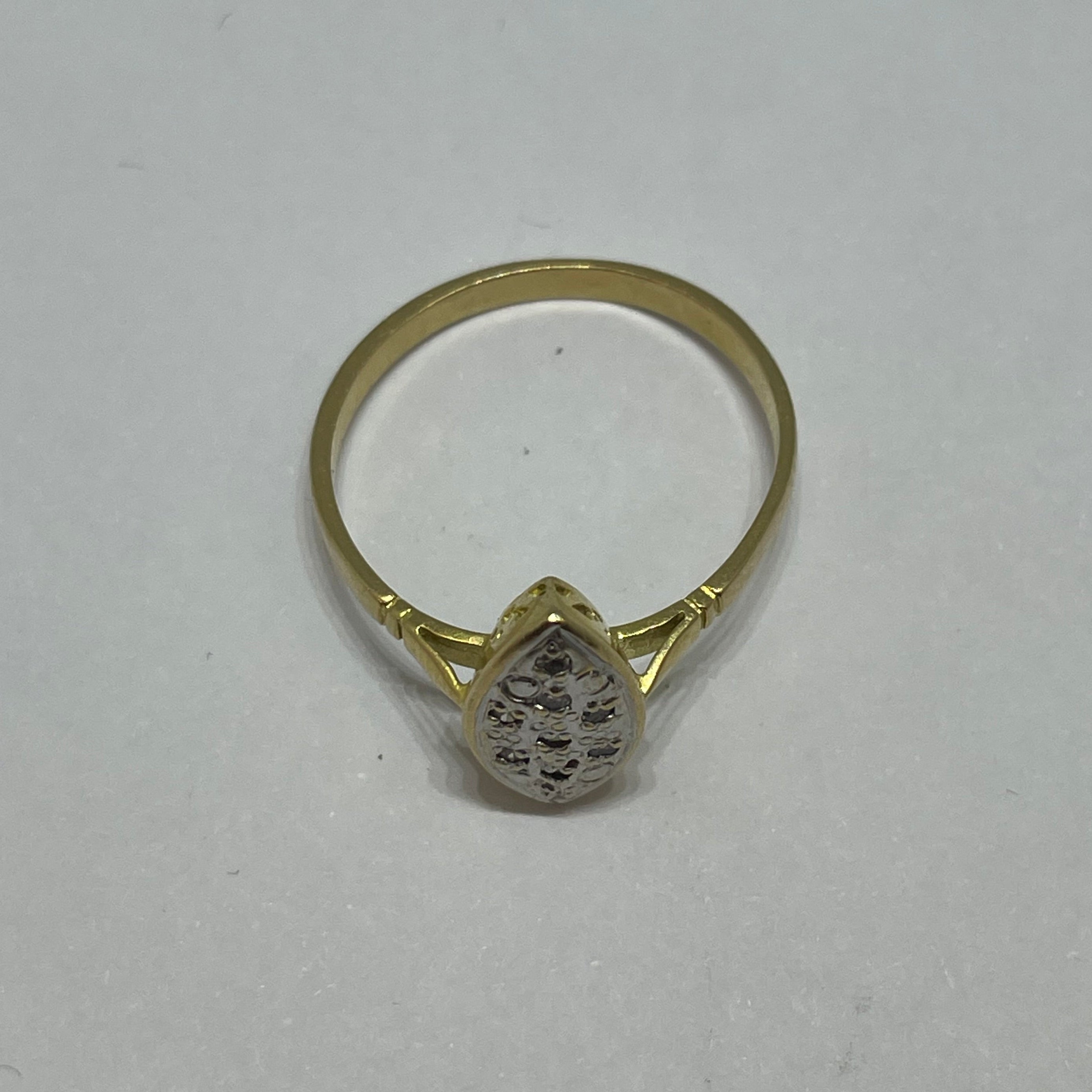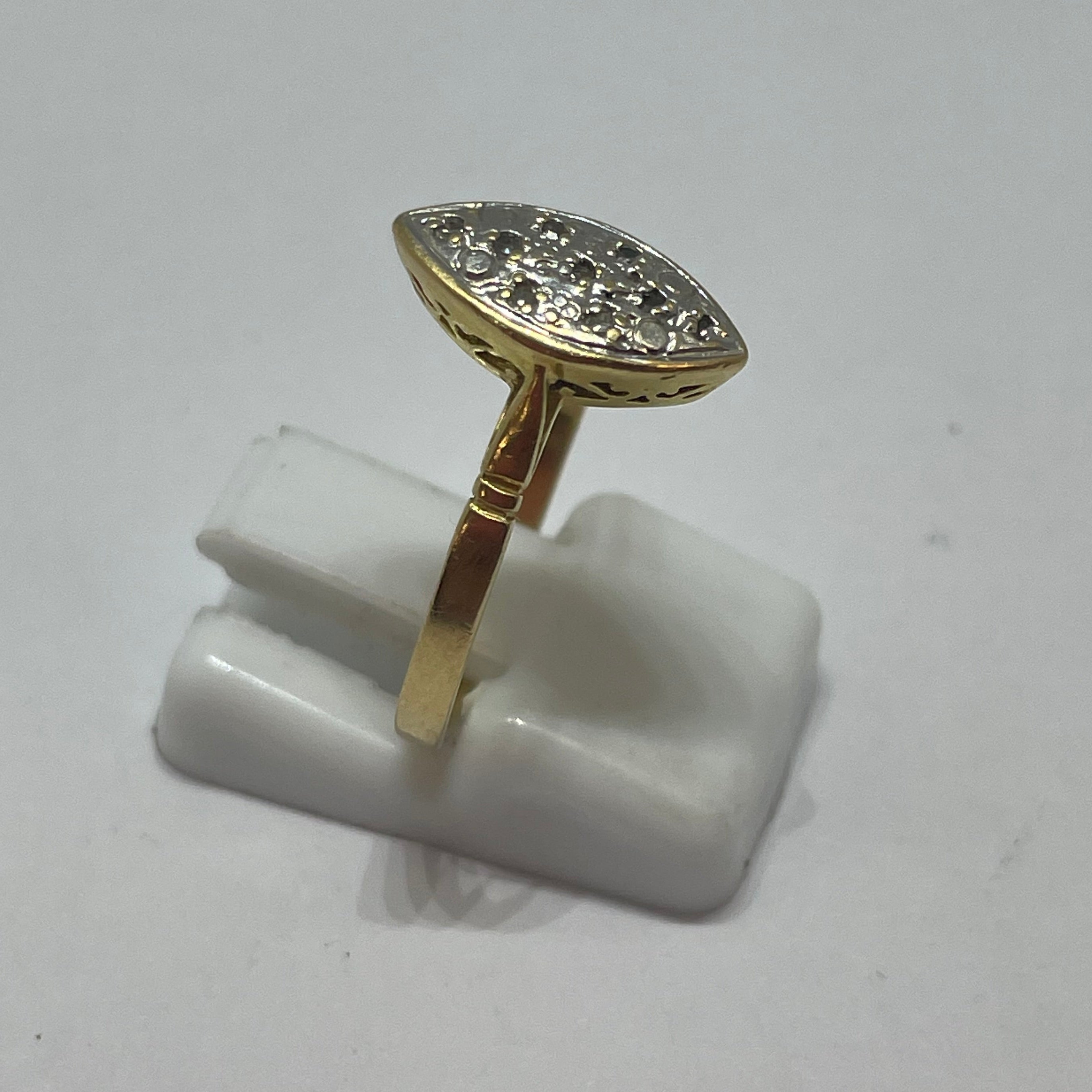 Bague marquise en or jaune 750/1000 (18 carats), poinçon Tête d’Aigle, poids 2,65 g, taille 55. Sertie de 5 petits diamants pour un éclat délicat. En très bon état.