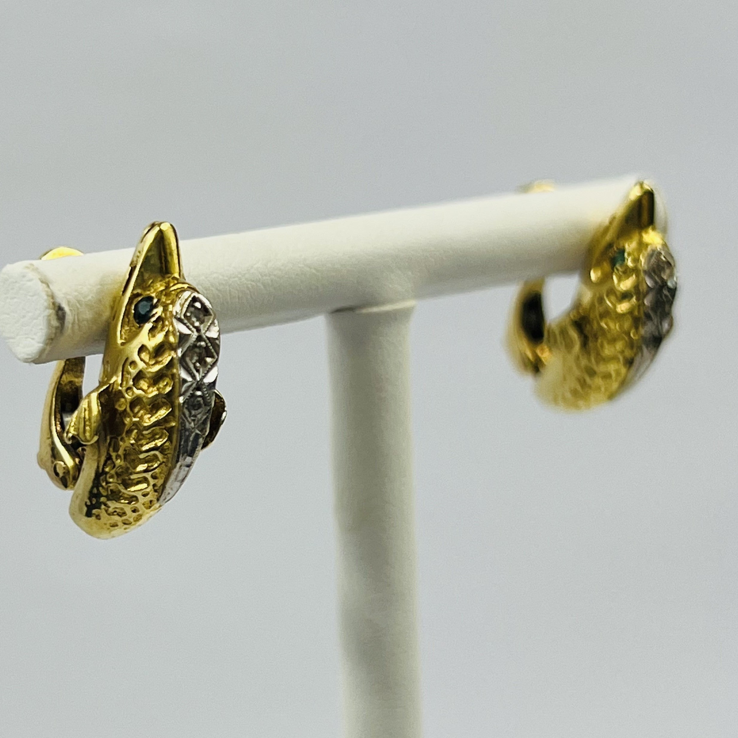 Boucles d'oreille 2 ors motif dauphins serties d'émeraudes et diamants
