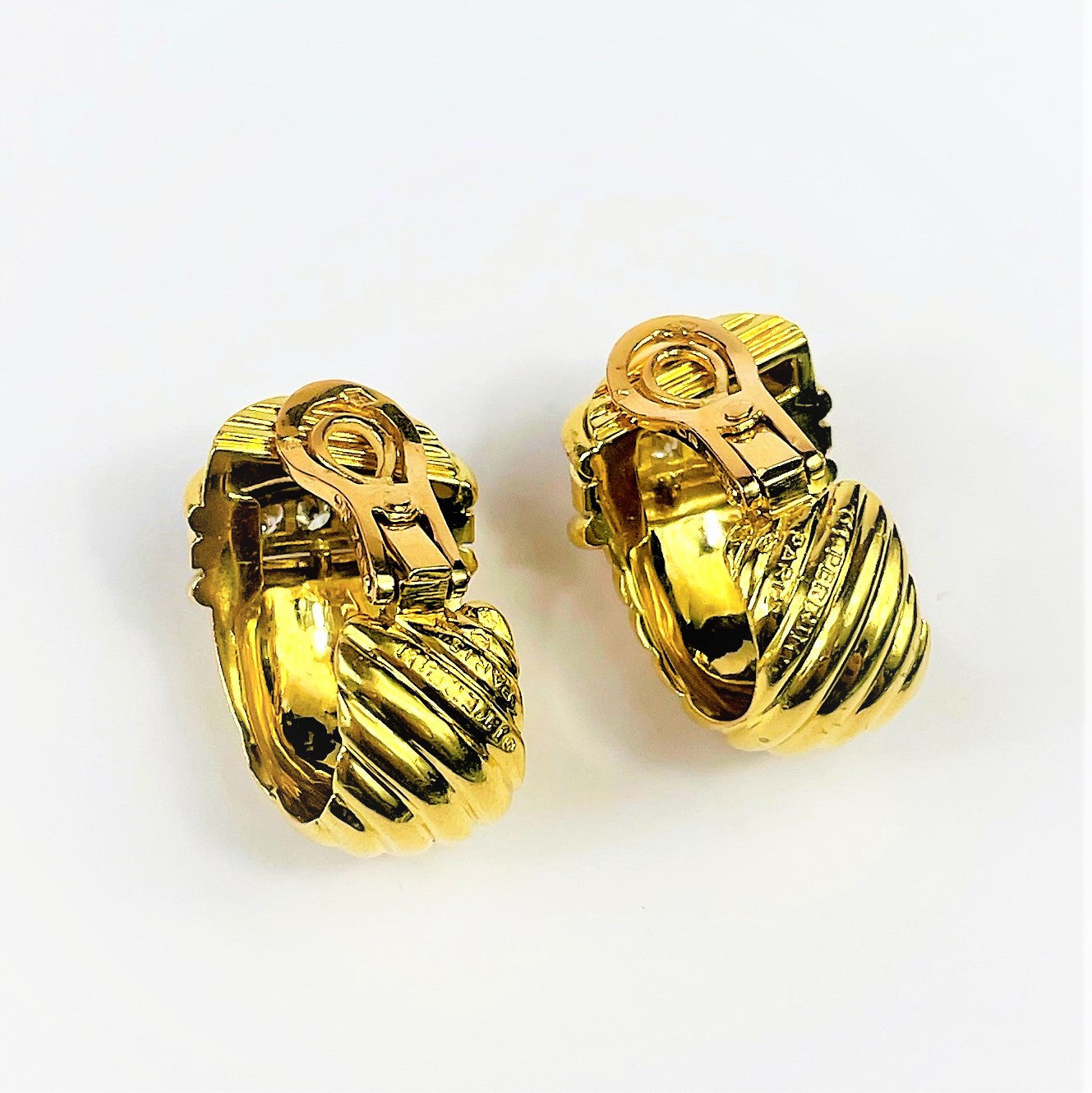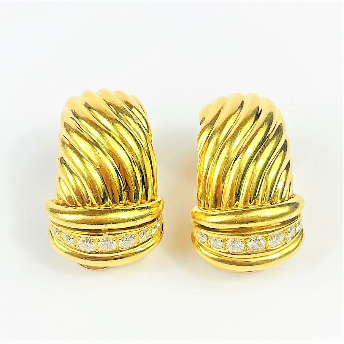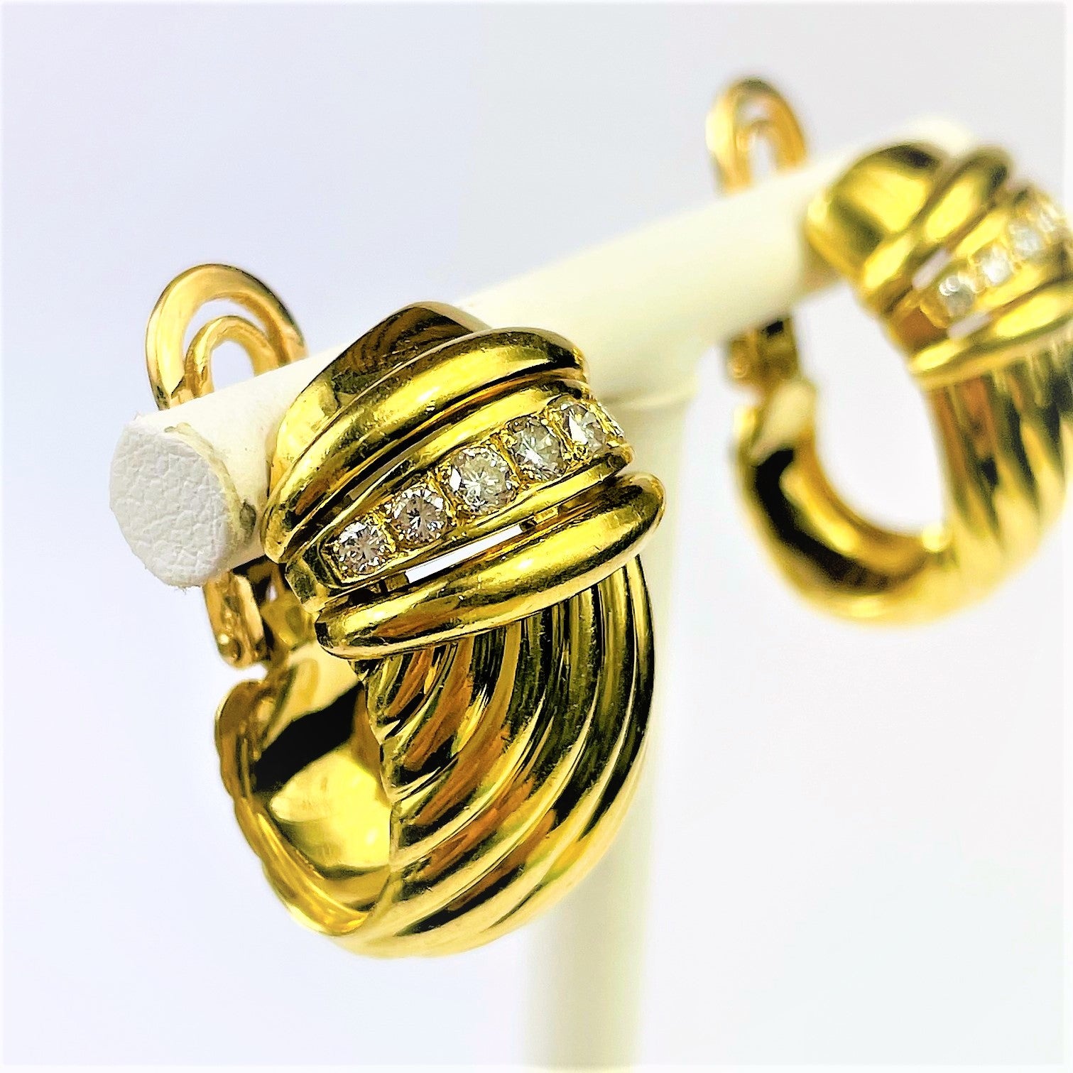Craquez pour ces chic boucles d'oreilles serties de diamants en or jaune 18 carats signé O.J Perrin