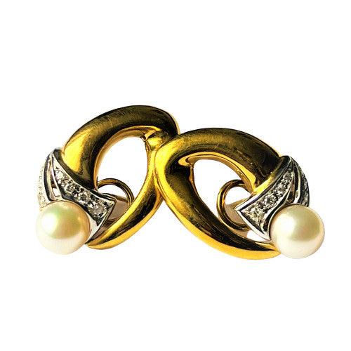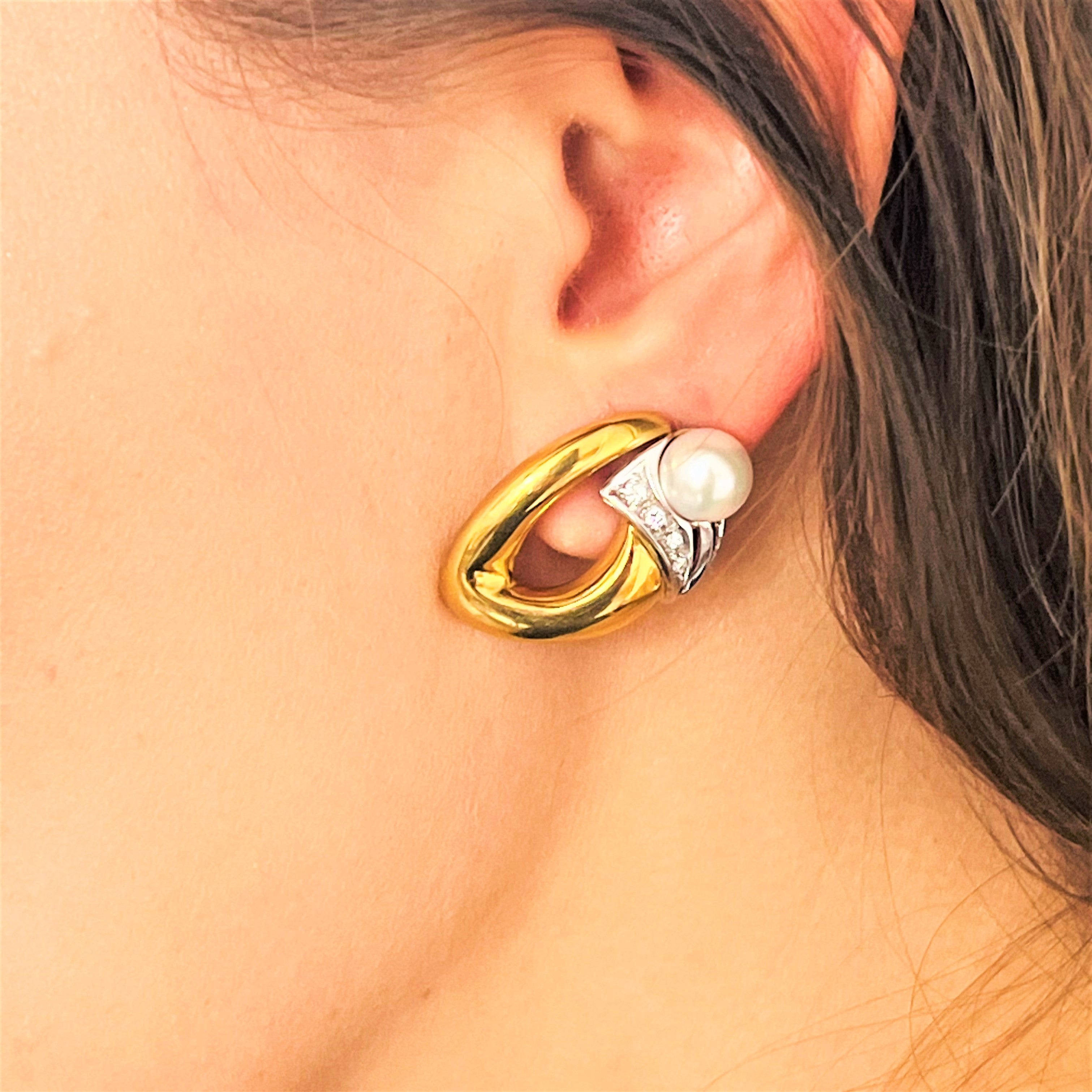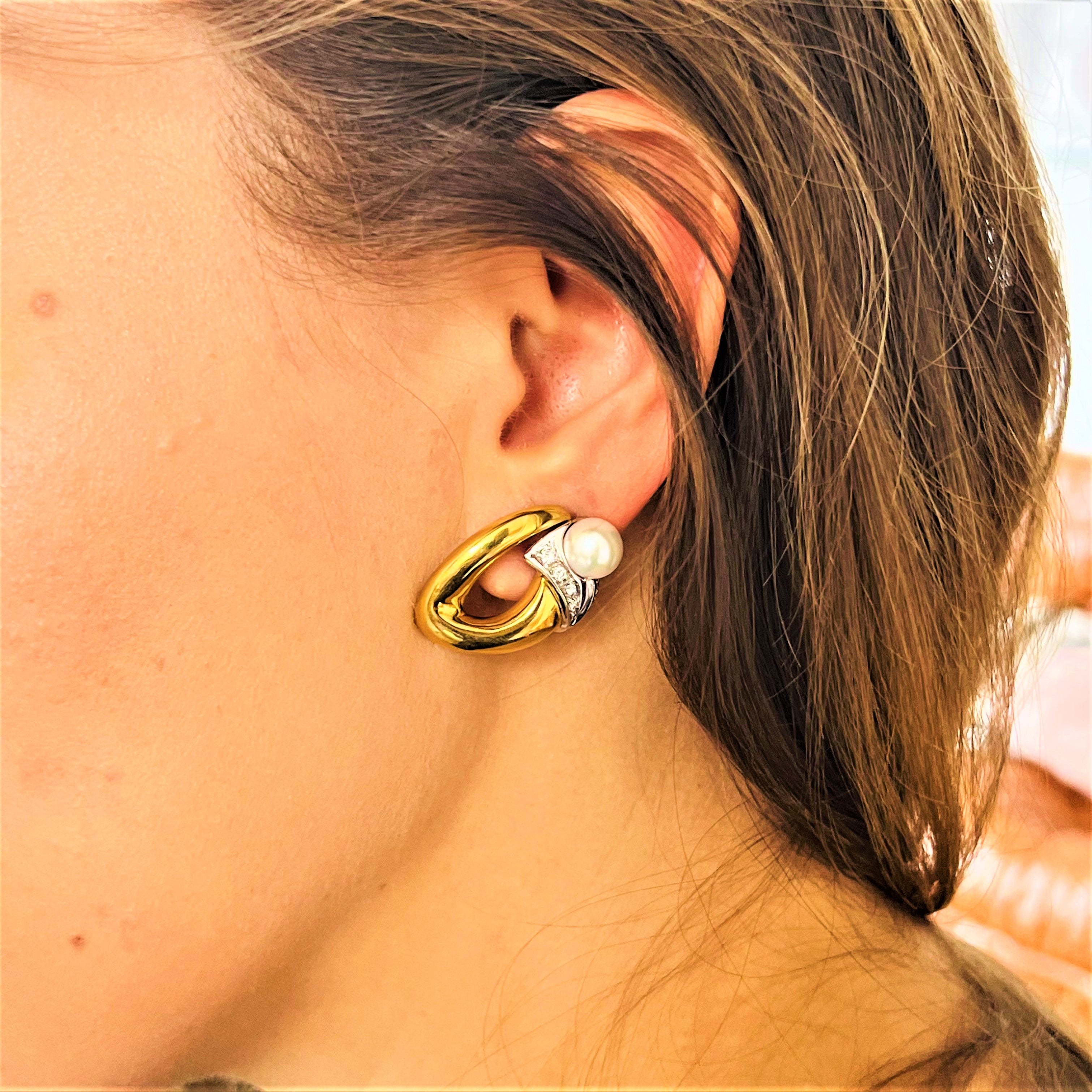 Ravissantes petites boucles d’oreilles 2 ors 750/1000 (18k) ornées de perles de cultures et diamants . Elles seront parfaites pour habiller vos tenues chics