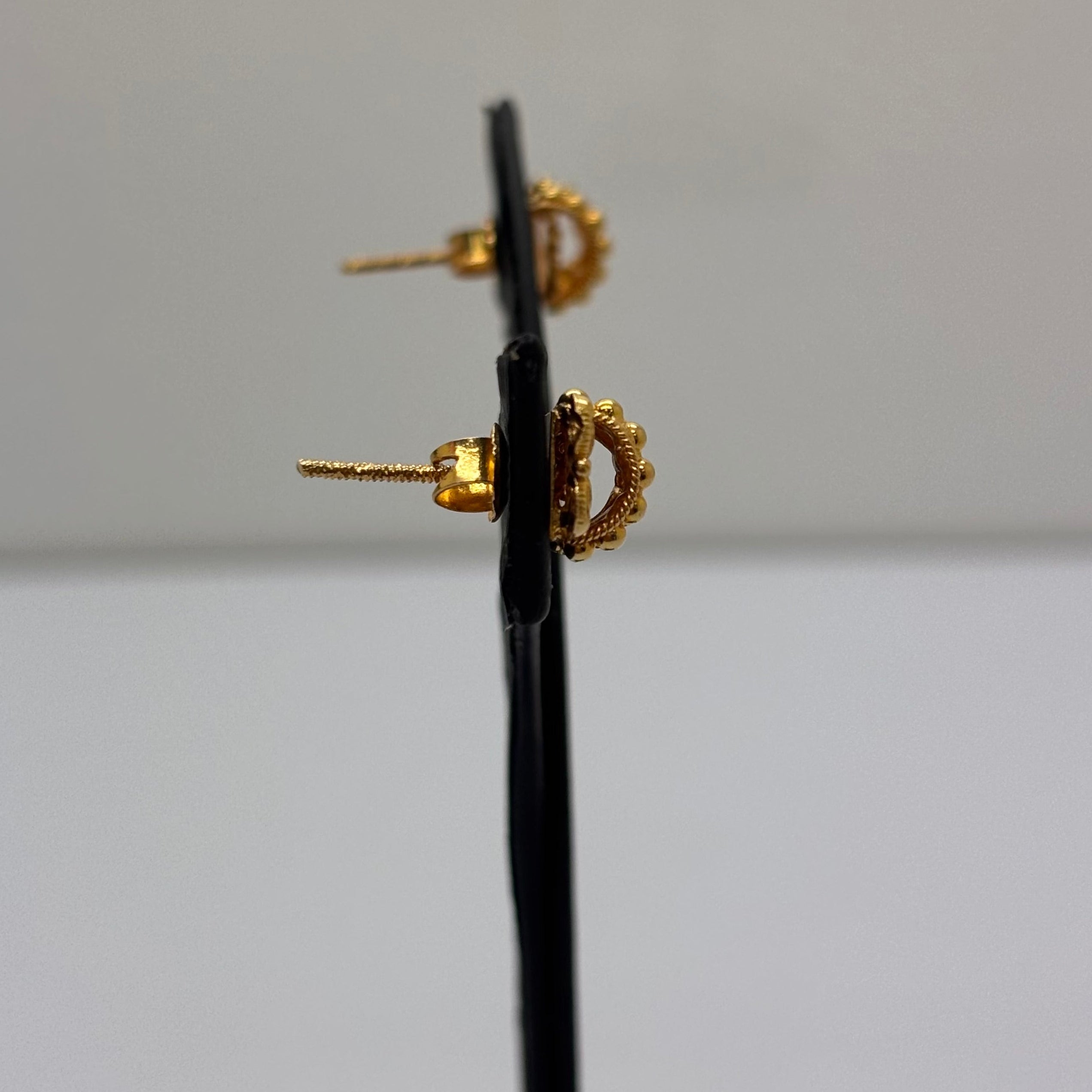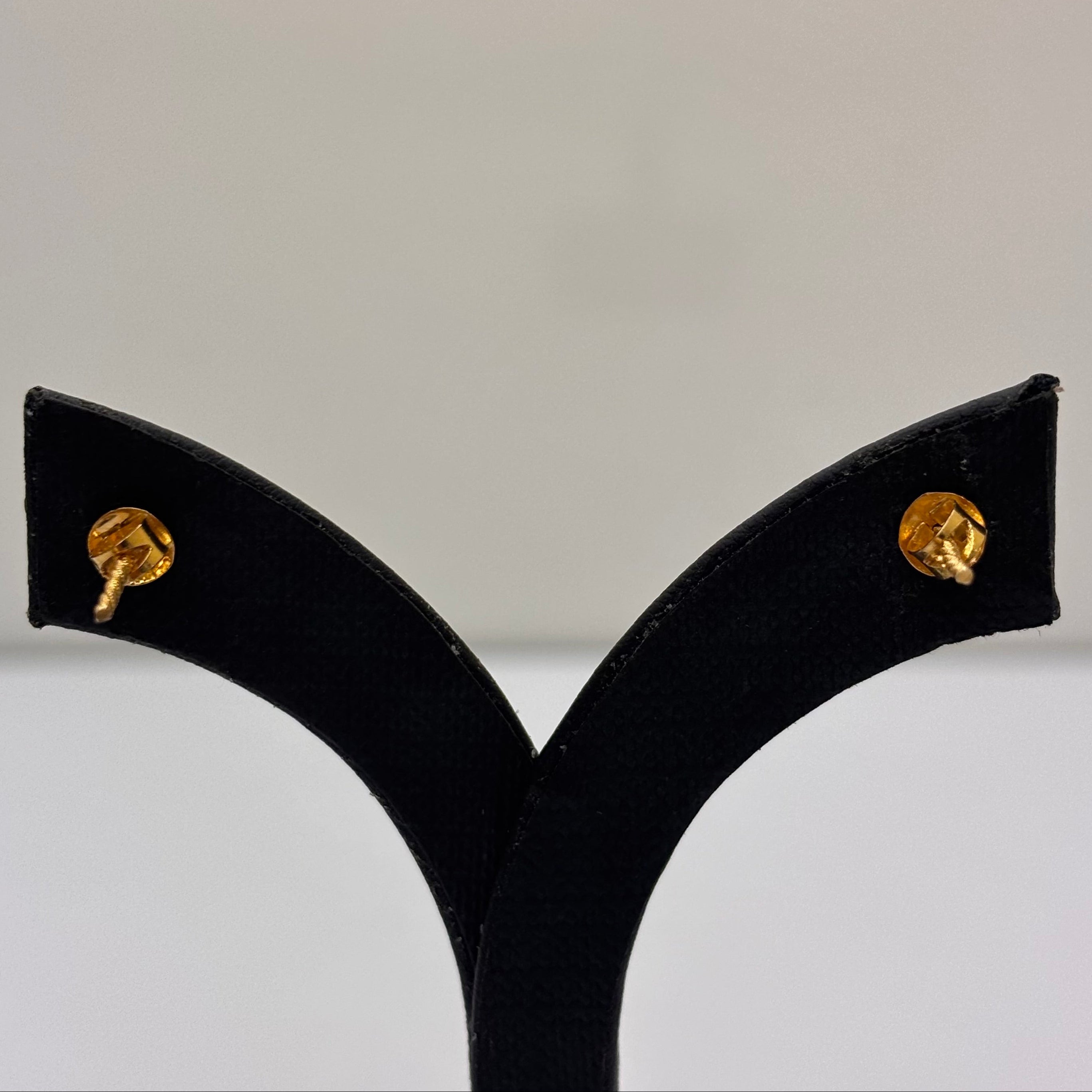 Ces boucles d’oreilles de type clou en or jaune 750/1000, dotées de fermoirs à vis et sans poinçon, présentent un poids de 2,94 g ainsi que des dimensions de 1,5 cm de hauteur, 1 cm de largeur et 1 mm d’épaisseur.