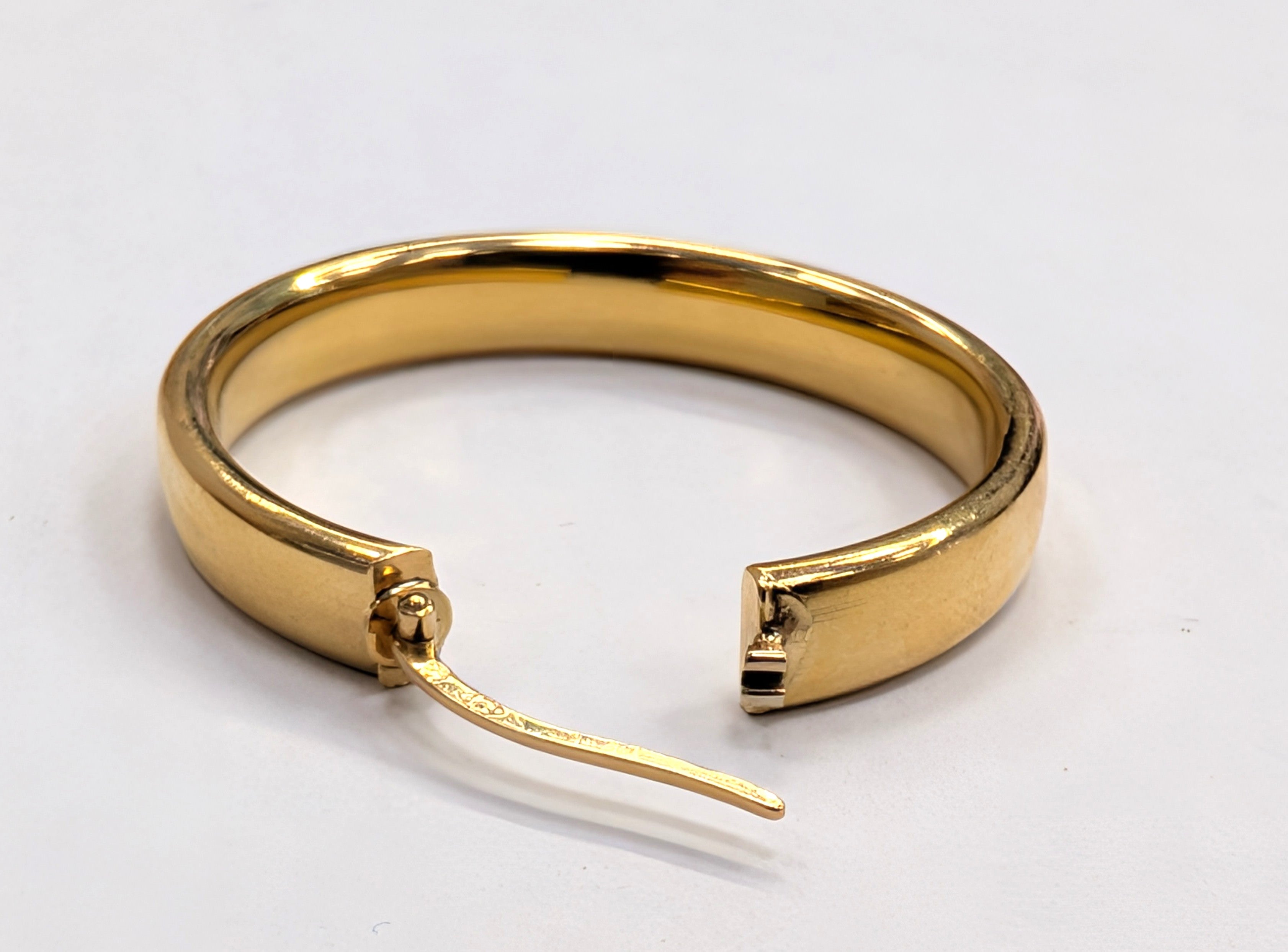 Boucles d'oreilles de type créoles et demi-créoles en or jaune 750/1000 (18 carats), avec fermoirs à cliquets. Elles sont poinçonnées « Tête d’Aigle » et affichent un poids de 5,85 g. Dimensions : 32 mm de hauteur, 30 mm de largeur et 4,72 mm d’épaisseur. Modèle sans pierre, en très bon état.