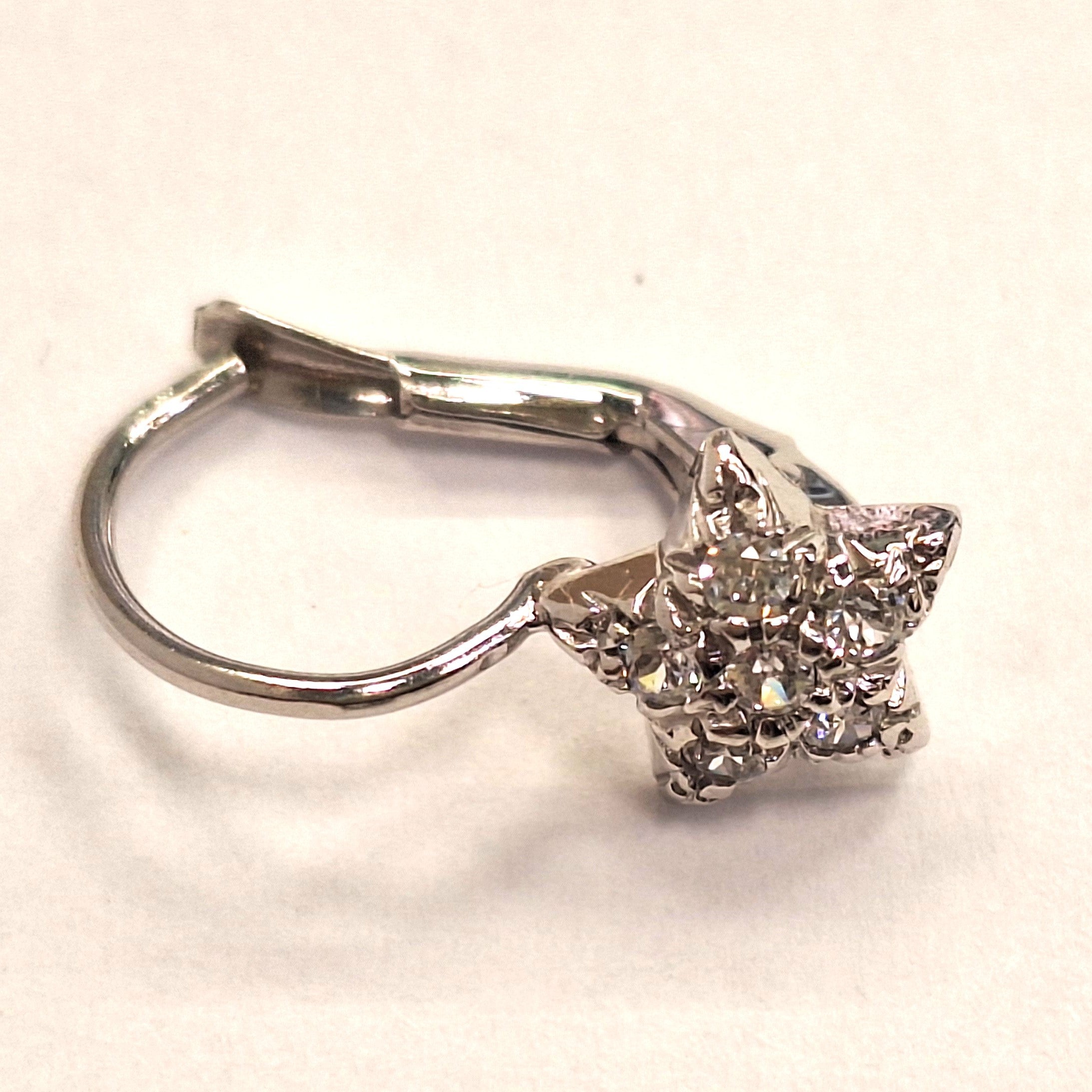 Jolie boucles d'oreilles dormeuses en forme d'étoile en or blanc 18 carats, sertie d'oxydes de zirconium.