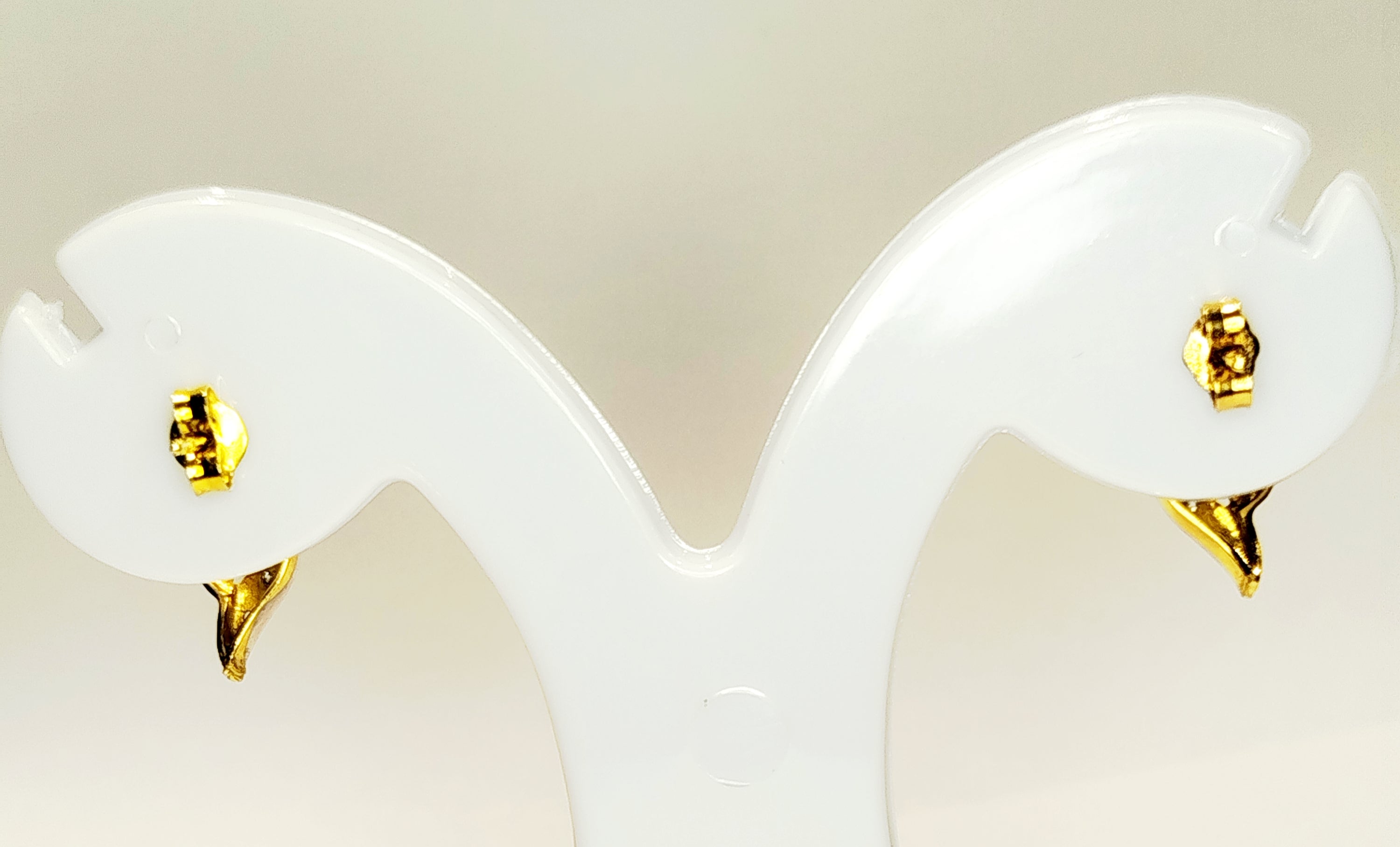 Boucles d’oreilles de type clou sont en or jaune 18 carats (750/1000) et portent le poinçon 750. Équipées d’un fermoir à poussettes, elles mesurent 2 cm de hauteur, 0,7 cm de largeur et 0,2 cm d’épaisseur. Avec un poids total de 2,86 grammes, elles se présentent en bon état.