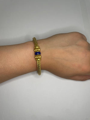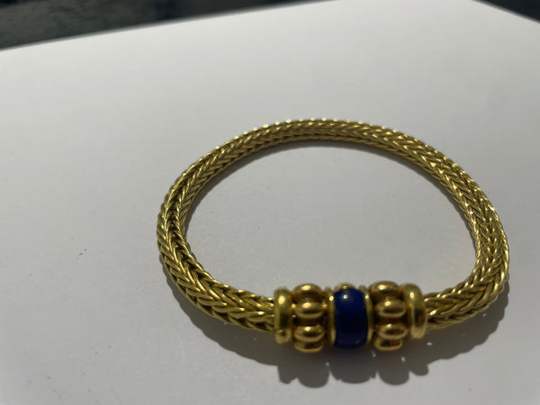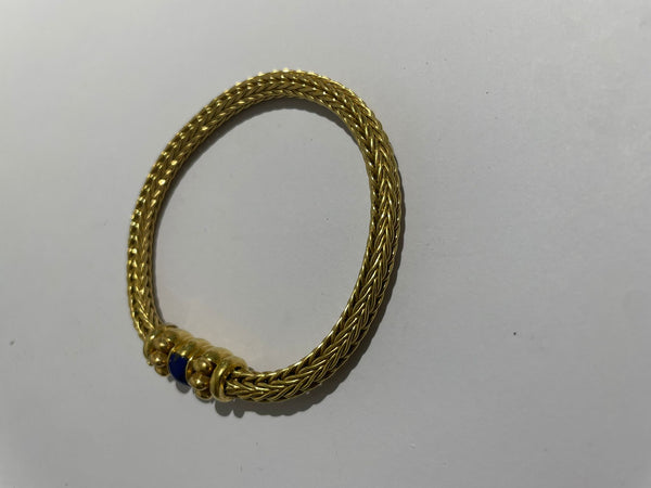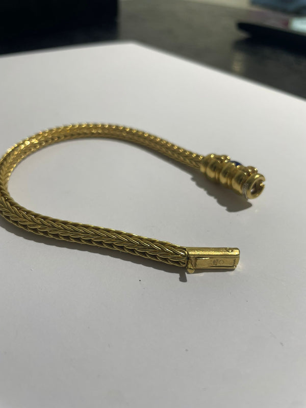 Bracelet en or jaune 18 carats (750/1000) se distingue par sa maille palmier, à la fois originale et raffinée. Il pèse 40,73 g et mesure 21 cm de long, 7 mm de large et 0,9 cm d'épaisseur. Doté d’un fermoir magnétique pratique, il porte un poinçon 750. L’ensemble est en bon état.