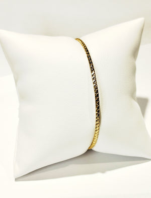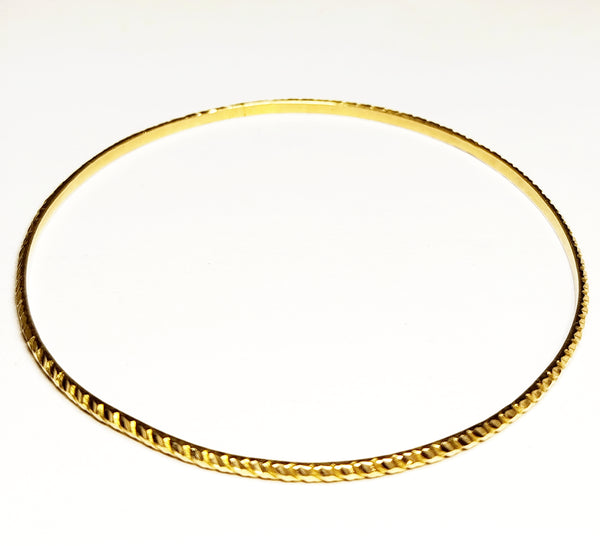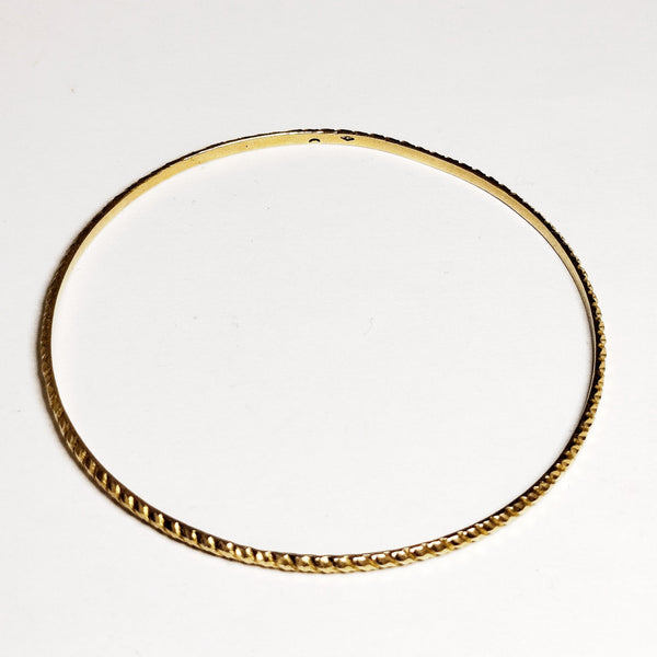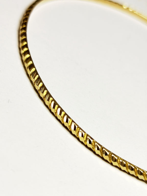 Bracelet jonc en or jaune 18 carats (750/1000), au design épuré avec maille jonc lisse. Il pèse 7,74 grammes et mesure 6,5 cm de diamètre, pour une finesse de 0,3 mm d'épaisseur et de largeur. Ce bijou en très bon état est doté d’un fermoir jonc discret.
