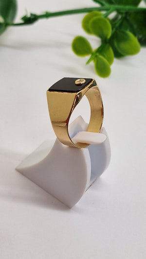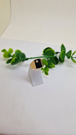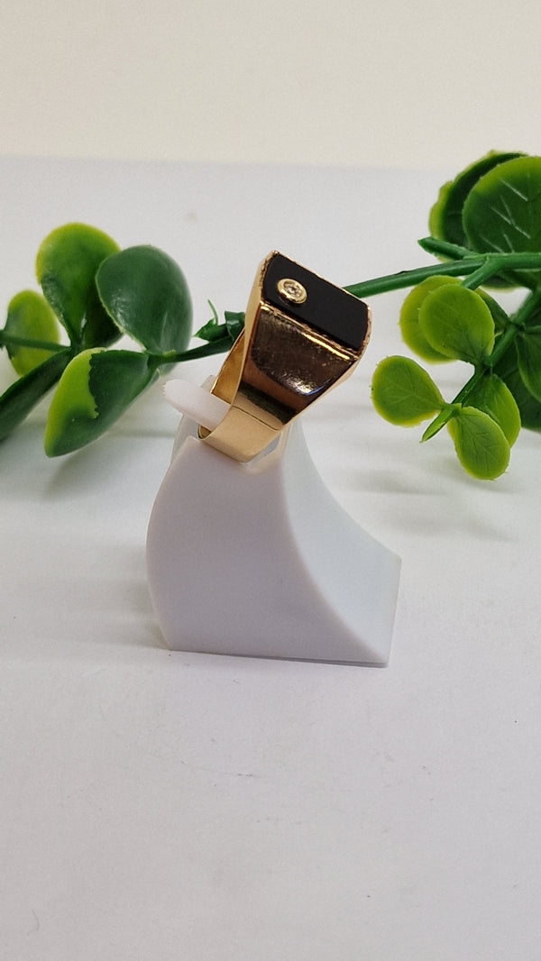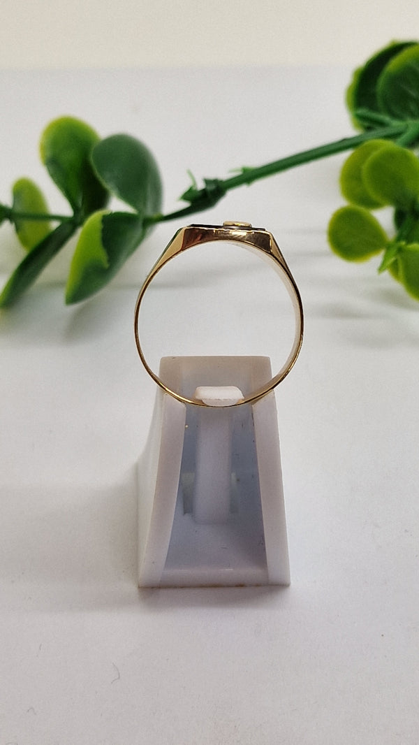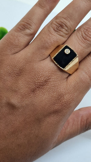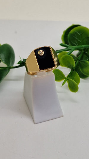 Chevalière majestueuse en or jaune 18 carats (750/1000), poinçonnée Tête d’Aigle. Pesant 6,48 grammes et de taille 67, elle est sublimée par une pierre onyx, ajoutant une touche d’élégance et de caractère à son design intemporel. En très bon état, cette bague est idéale pour exprimer un style affirmé tout en restant sophistiquée.