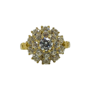 Élégante bague Chou en or jaune 18 carats, sublimée par 20 zirconiums étincelants. Un bijou raffiné et lumineux, taille 52, poinçonnée 750, pour un poids de 3,80 g. En très bon état, parfaite pour ajouter une touche d’éclat à votre quotidien.