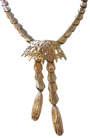 Collier matinée en or jaune 18 carats (750/1000). Pesant 37,15 grammes et mesurant 42 cm de longueur, ce bijou est conçu avec une maille serpent délicate, d’une largeur de 0,5 cm, pour un design fluide et raffiné. Son pendentif de 3,5 cm de largeur et 2 cm de hauteur ajoute une touche remarquable à l’ensemble. Doté d’un fermoir à cliquet pratique, ce collier incarne l’harmonie entre créativité et élégance. En bon état, il est idéal pour les amateurs de bijoux au design original et distinctif.