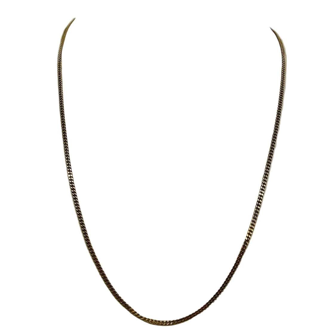 Collier ras du cou en maille anglaise en or jaune 750/1000 (18 carats), poinçon 750, poids 4,24 g, longueur 43 cm, largeur et épaisseur 1 mm. Fermoir anneau ressort. En très bon état, discret et élégant.