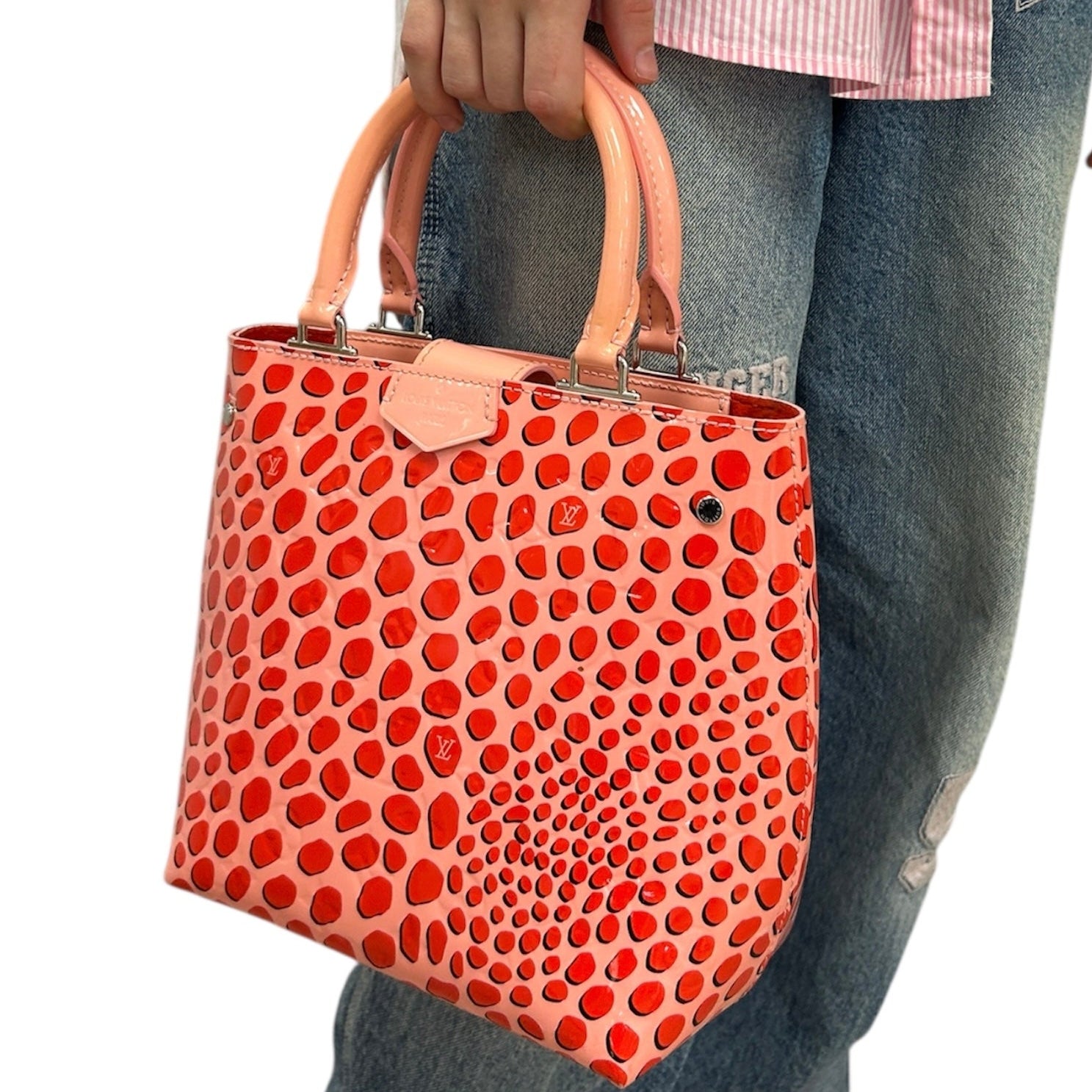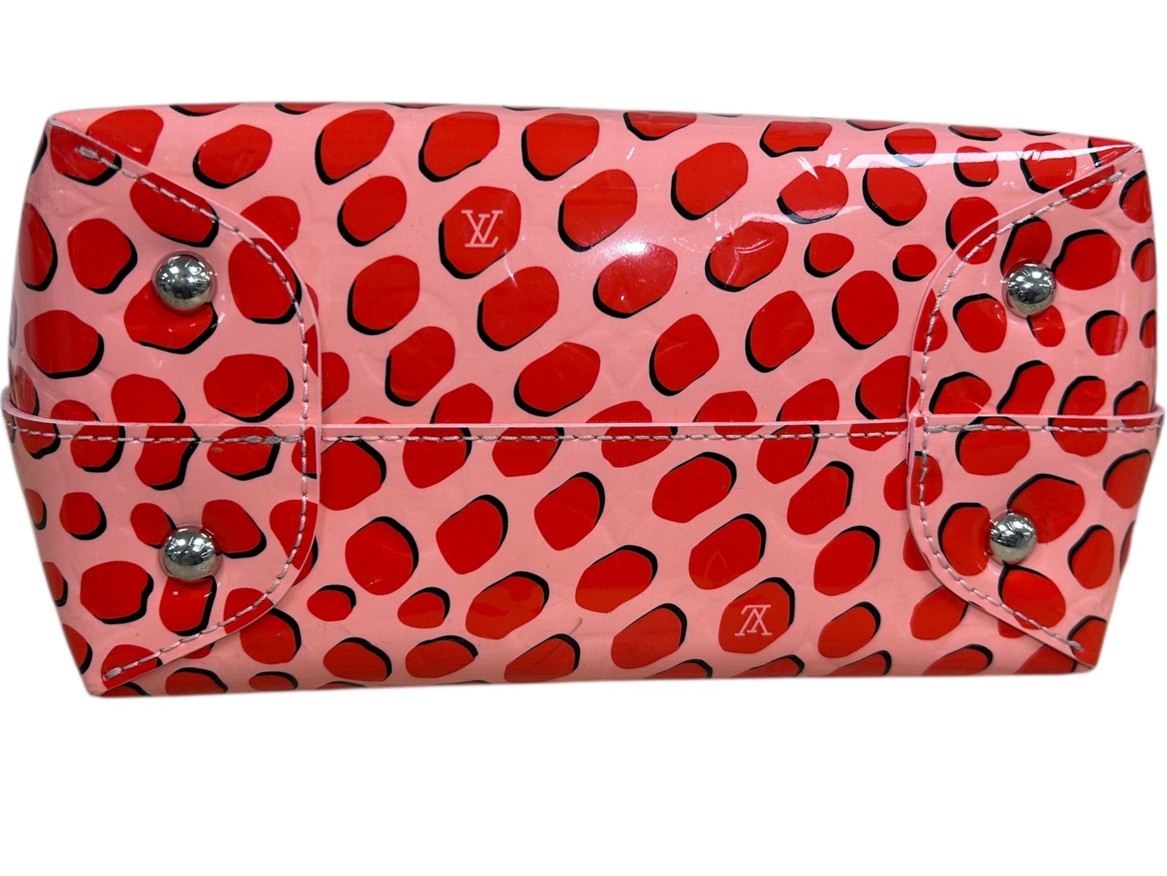 Sac à main Louis Vuitton modèle Open Tote Jungle, en cuir vernis rose et rouge. Fermeture par bouton aimanté. Dimensions : 27 × 22 × 12 cm. en bon état. quotidien chic.