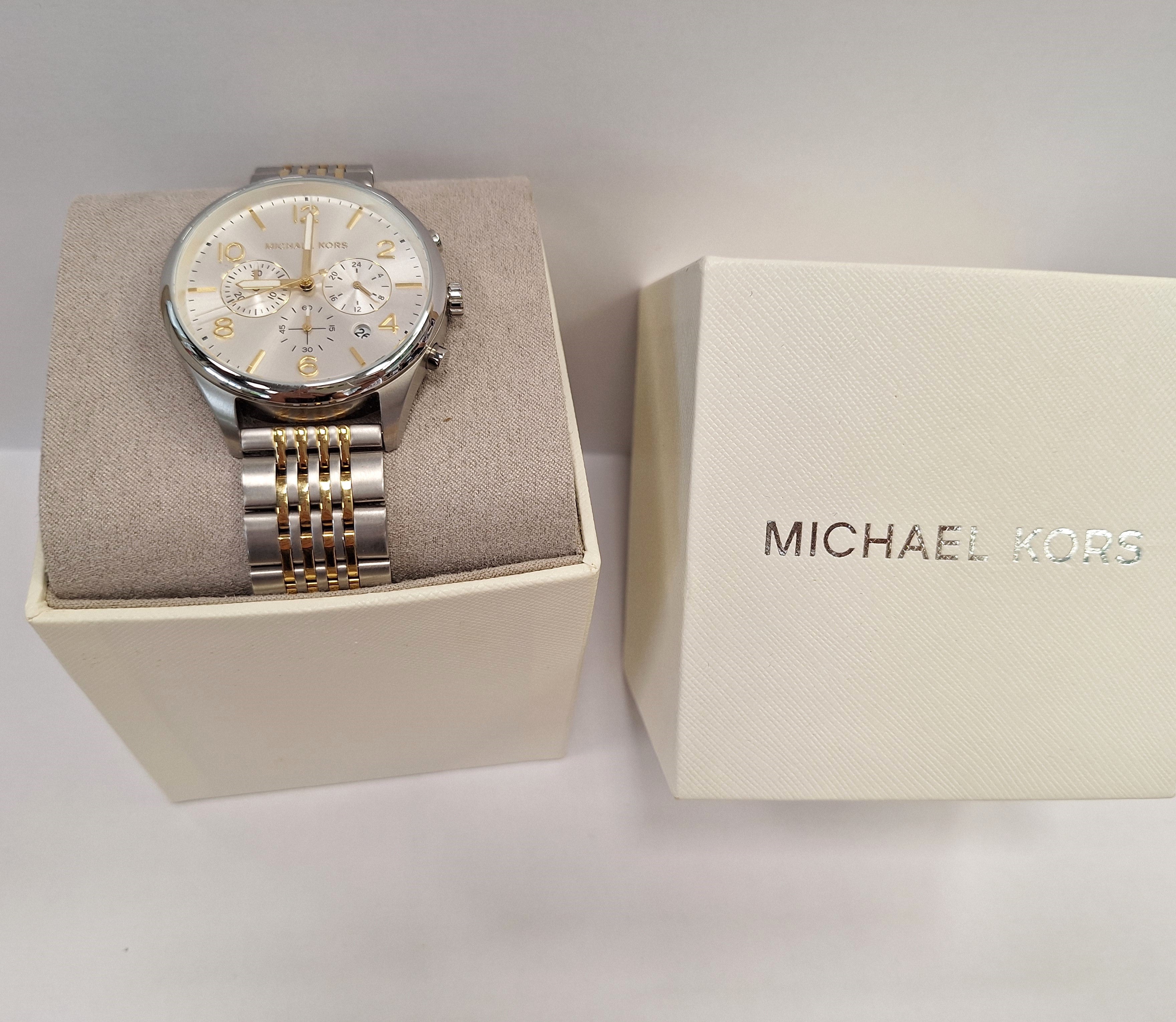 Très jolie montre chronograph de la marque michael kors pour homme, vendu avec sa boite complète, maillon supplémentaire.