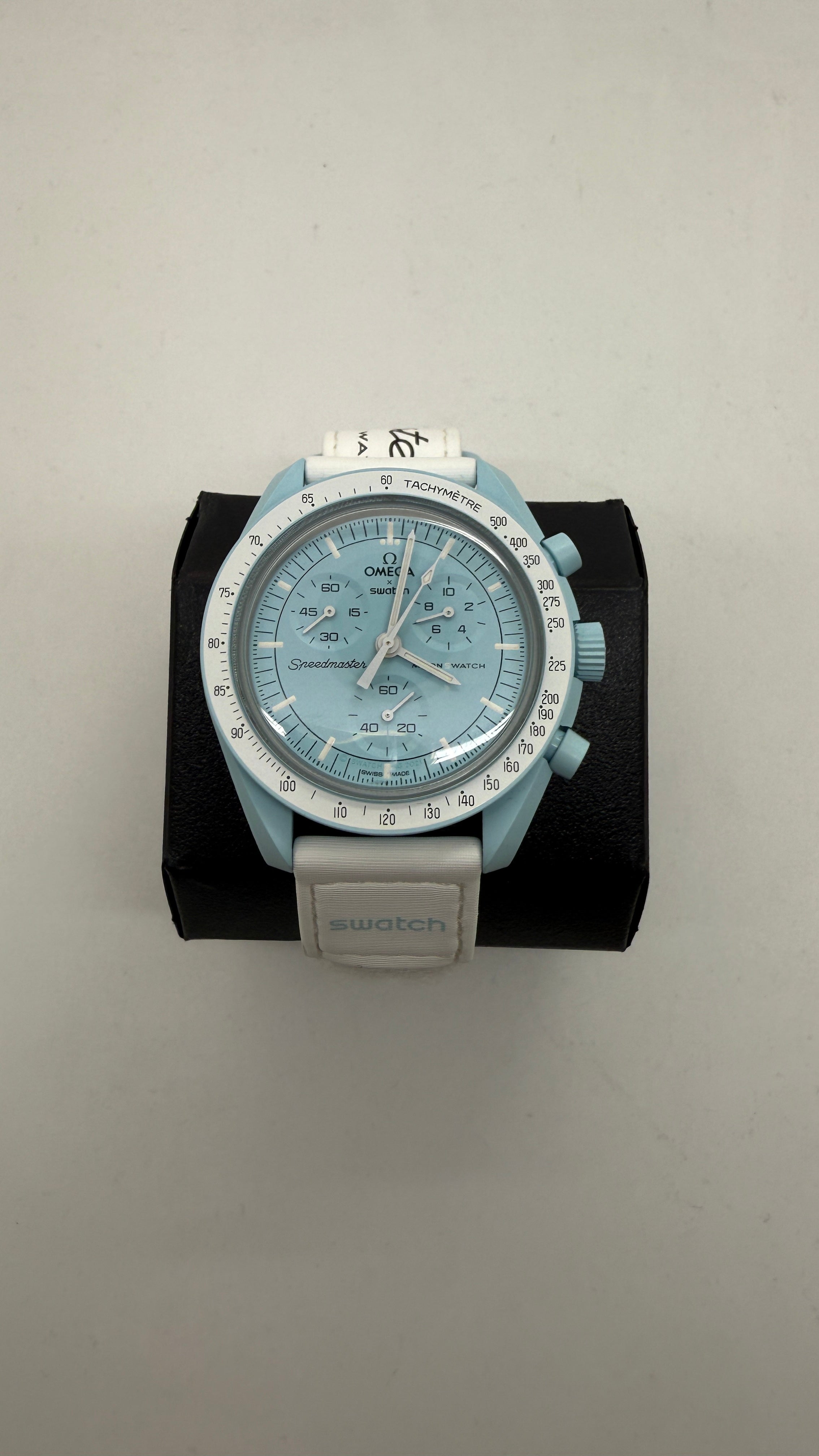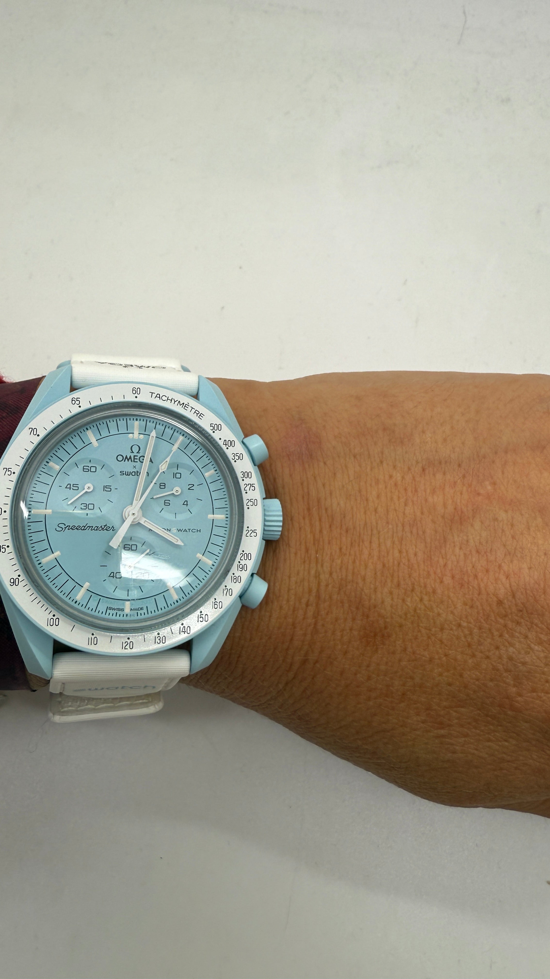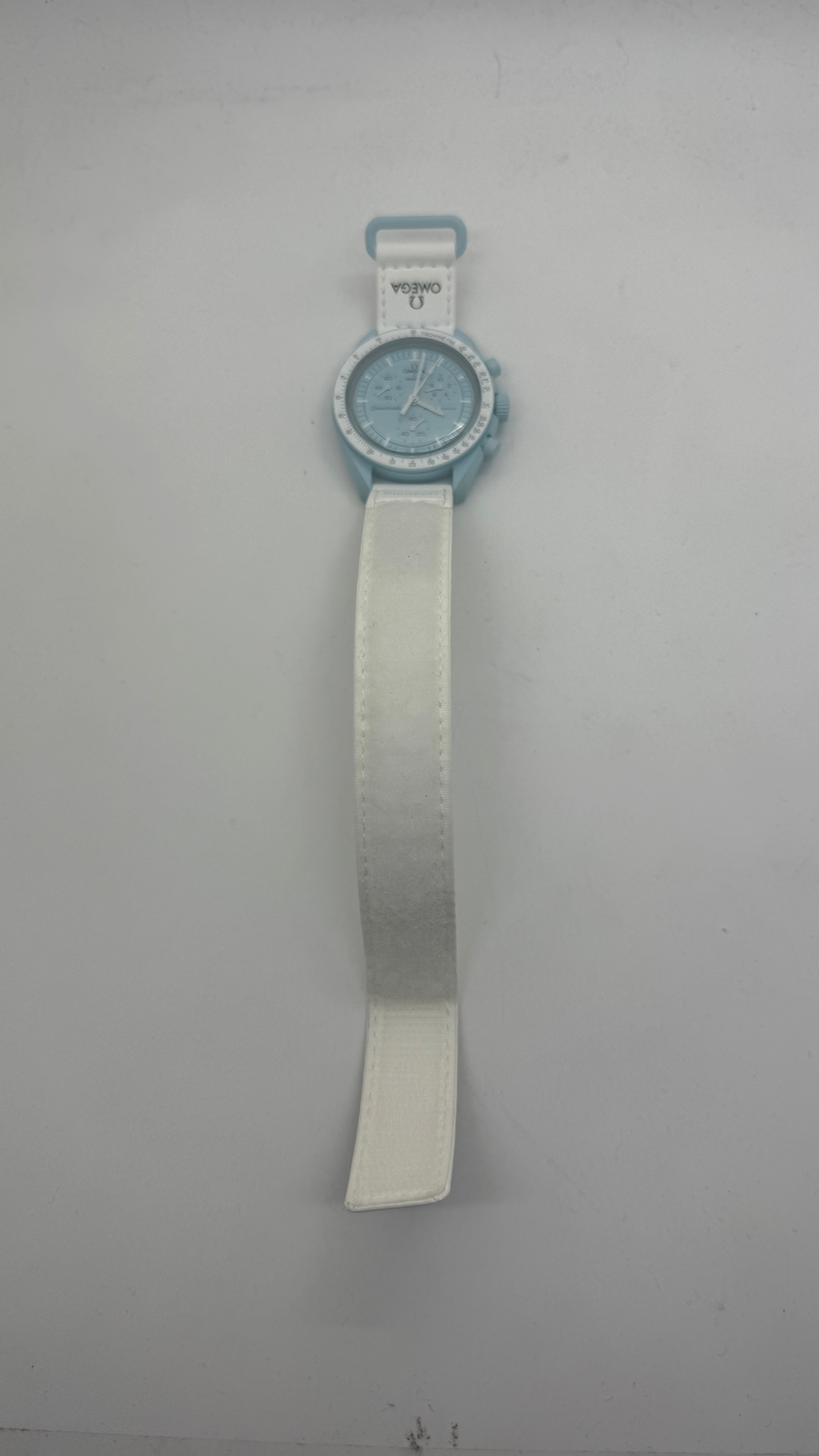 • Montre Swatch Oméga Uranus 2022 Bleu Ciel Biocéramique VELCRO®