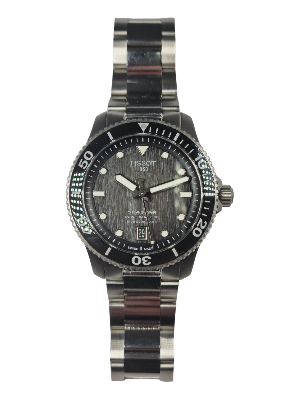 Sophistication ultime en matière d'équipement de plongée, autant sur le plan esthétique que technique, la Tissot Seastar 1000 incarne le style et la performance, sans compromis. Dédiée à la plongée, elle offre un look sportif et des fonctionnalités indispensables sous l’eau. Parfaitement fiable jusqu'à une pression de 30 bar (300m), elle est la preuve qu'une montre de sport sous-marin et un garde-temps automatique sophistiqué peuvent être conciliés en un même objet. Le thème de la plongée est omniprésent avec des éléments tels qu'une lunette unidirectionnelle en céramique, des aiguilles et index luminescents, une couronne et un fond de boite vissés. Enfin, la collection Tissot Seastar 1000 offre une multitude de choix concernant le bracelet : caoutchouc, maille milanaise, bi-matière, acier équipé d’une boucle de plongée.