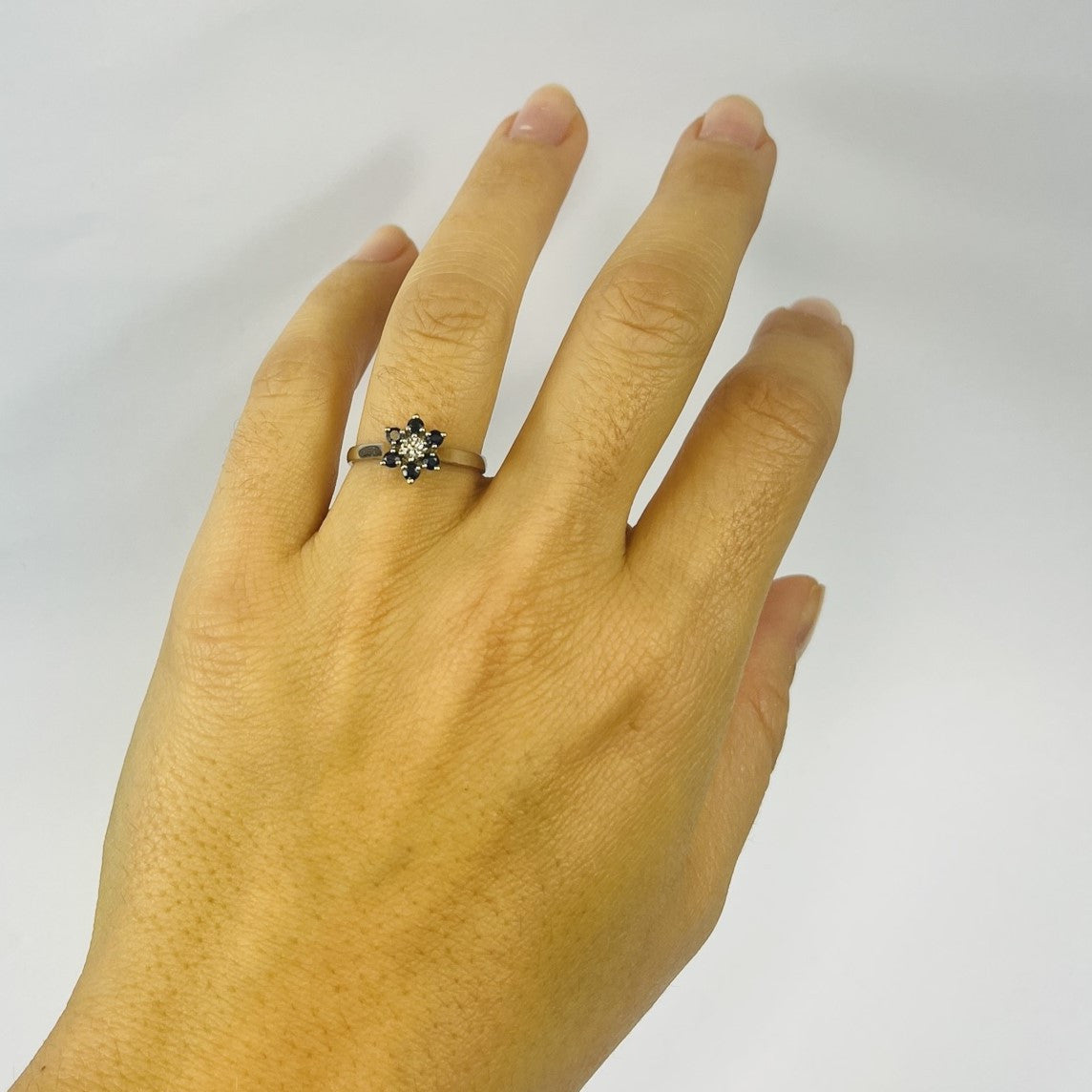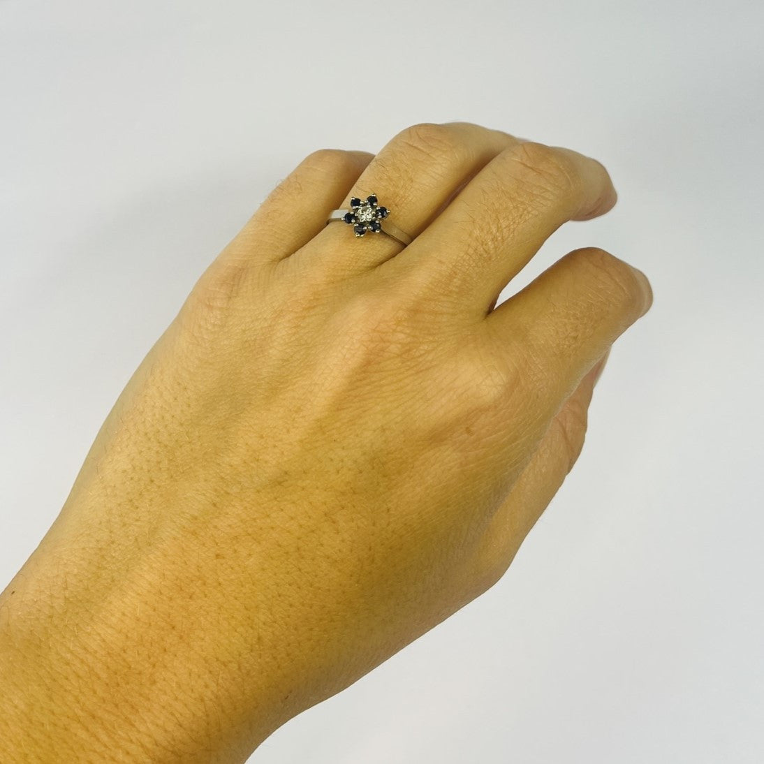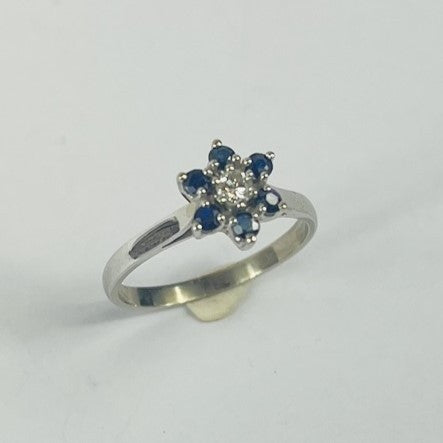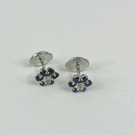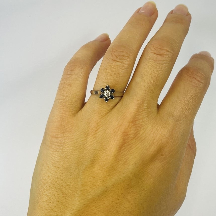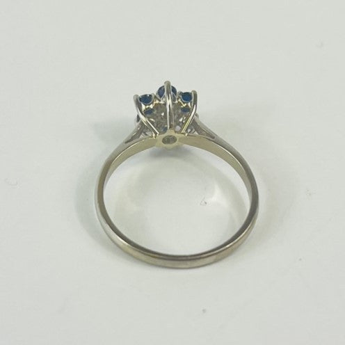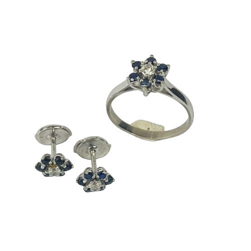 Belle parure bague et boucles d'oreille en or blanc ornée de saphir et diamants. Parfaite pour sublimer vos tenues !