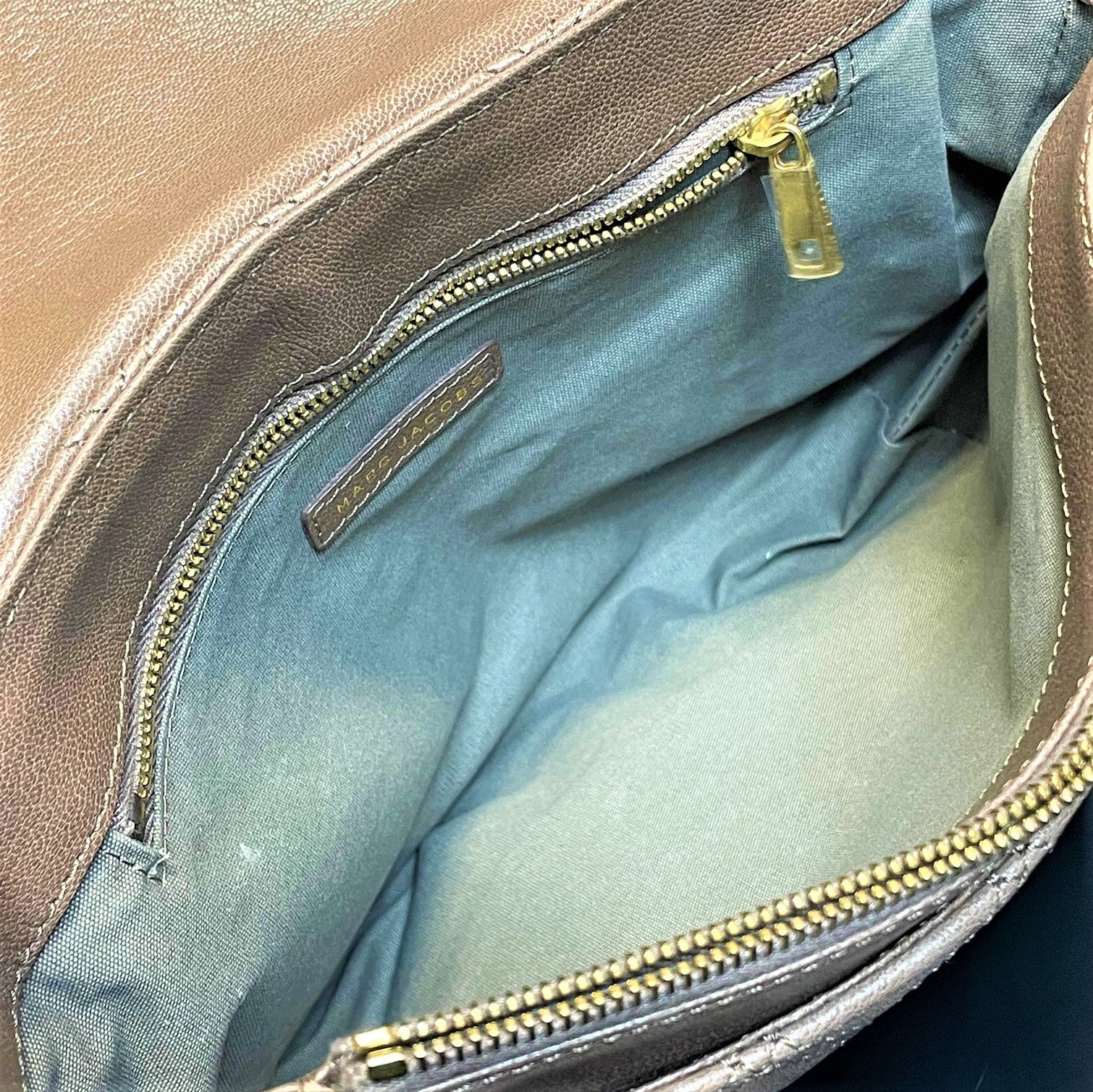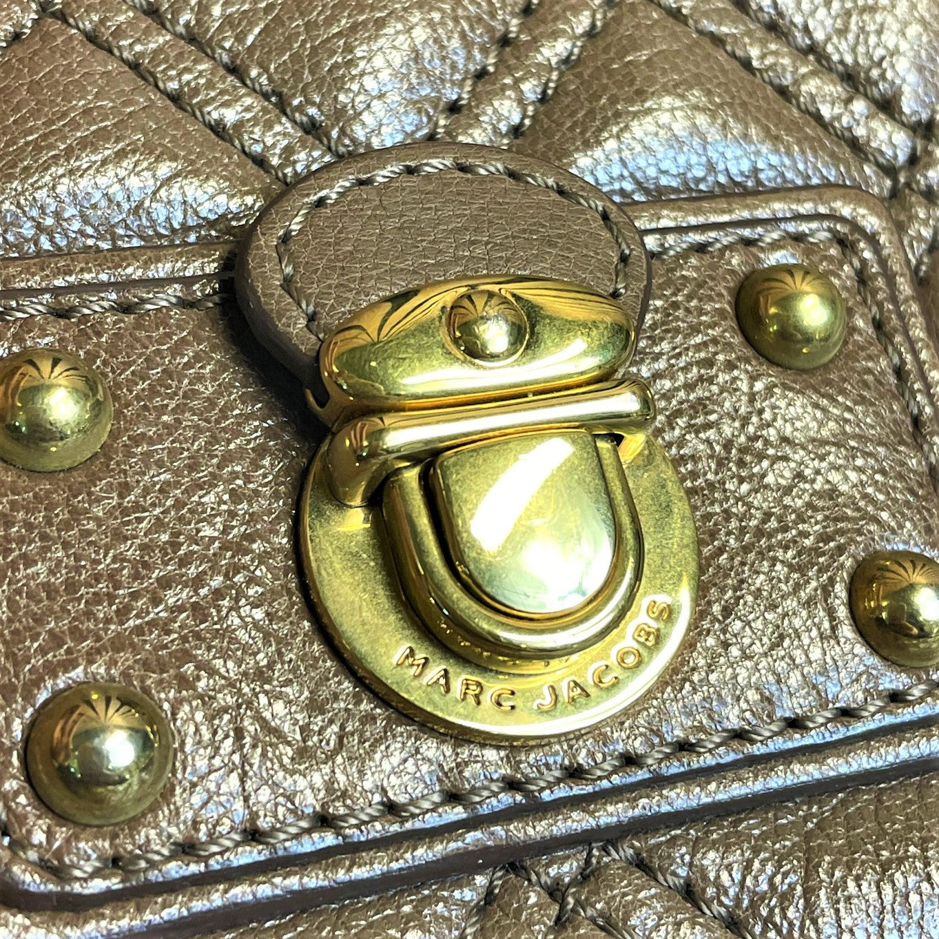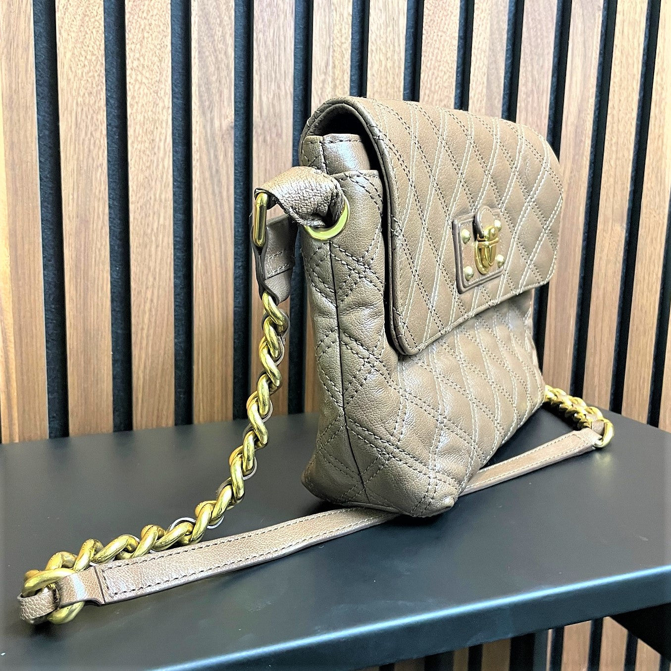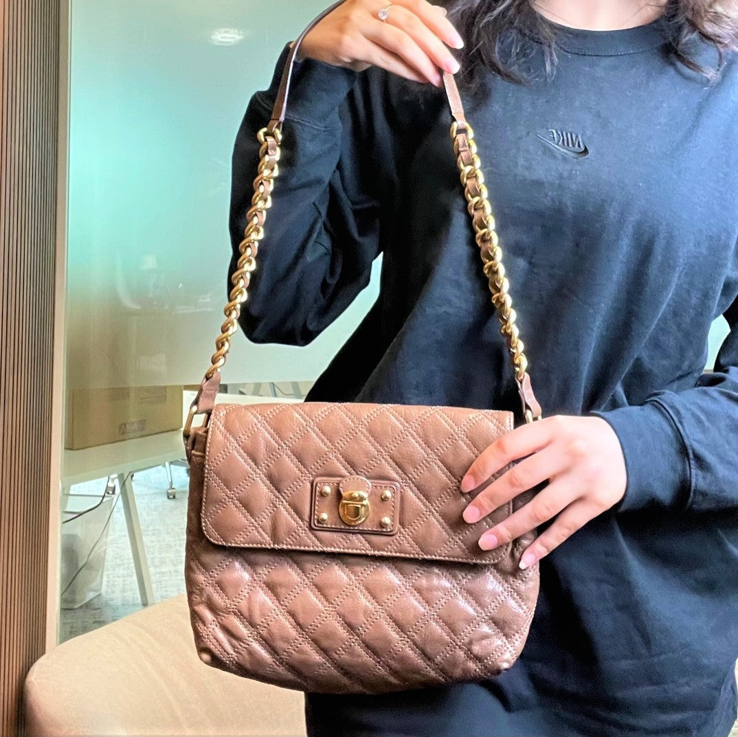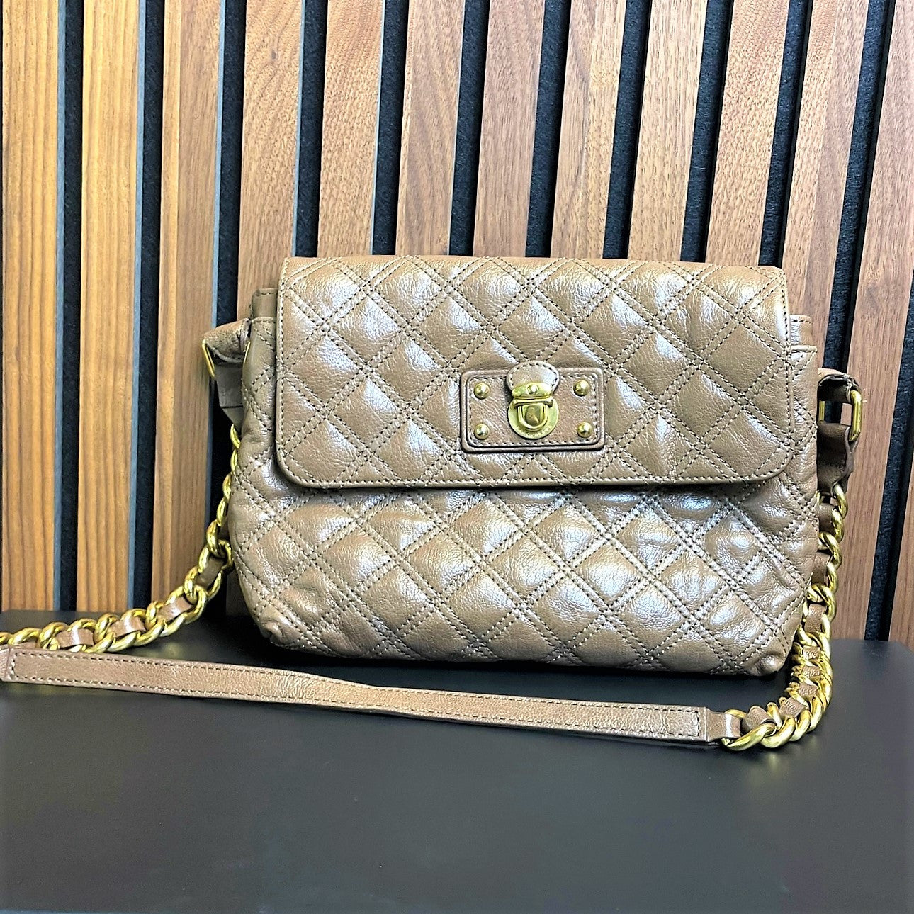 Craquez pour ce ravissant sac à main Marc Jacobs en cuir matelassé couleur taupe, parfait pour habiller n'importe laquelle de vos tenue façon chic ou décontractée