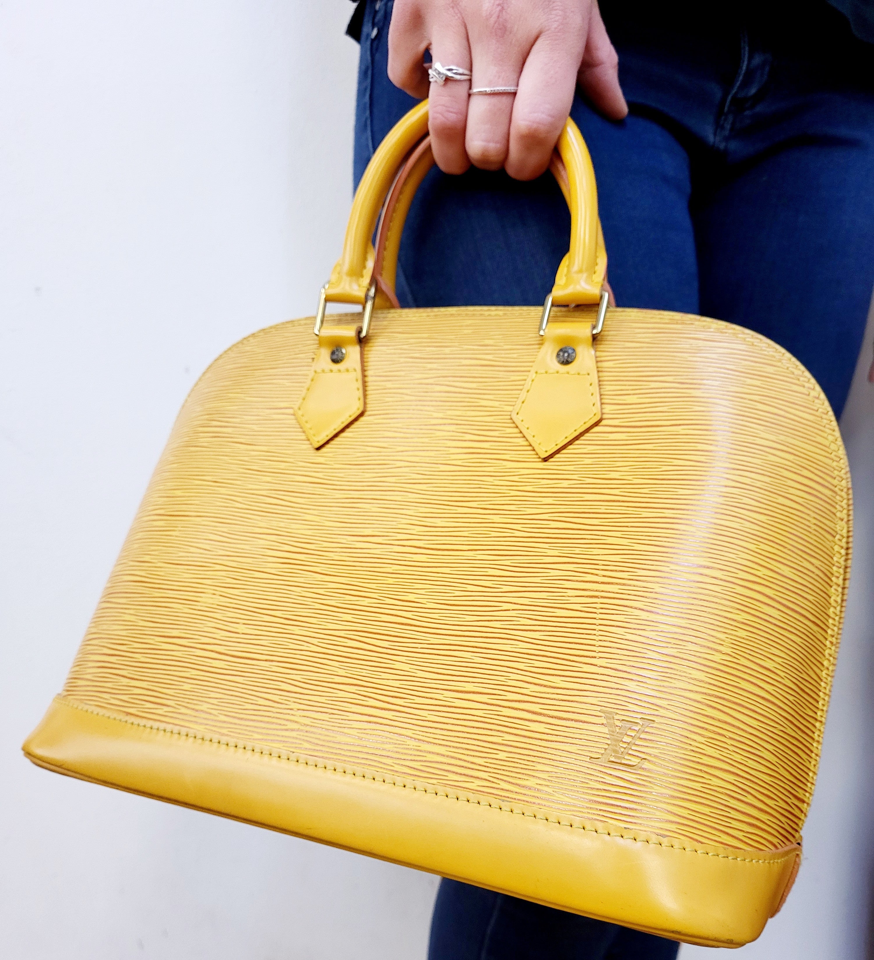 Caractéristiques supplémentaires : Sac alma en cuir épi jaune