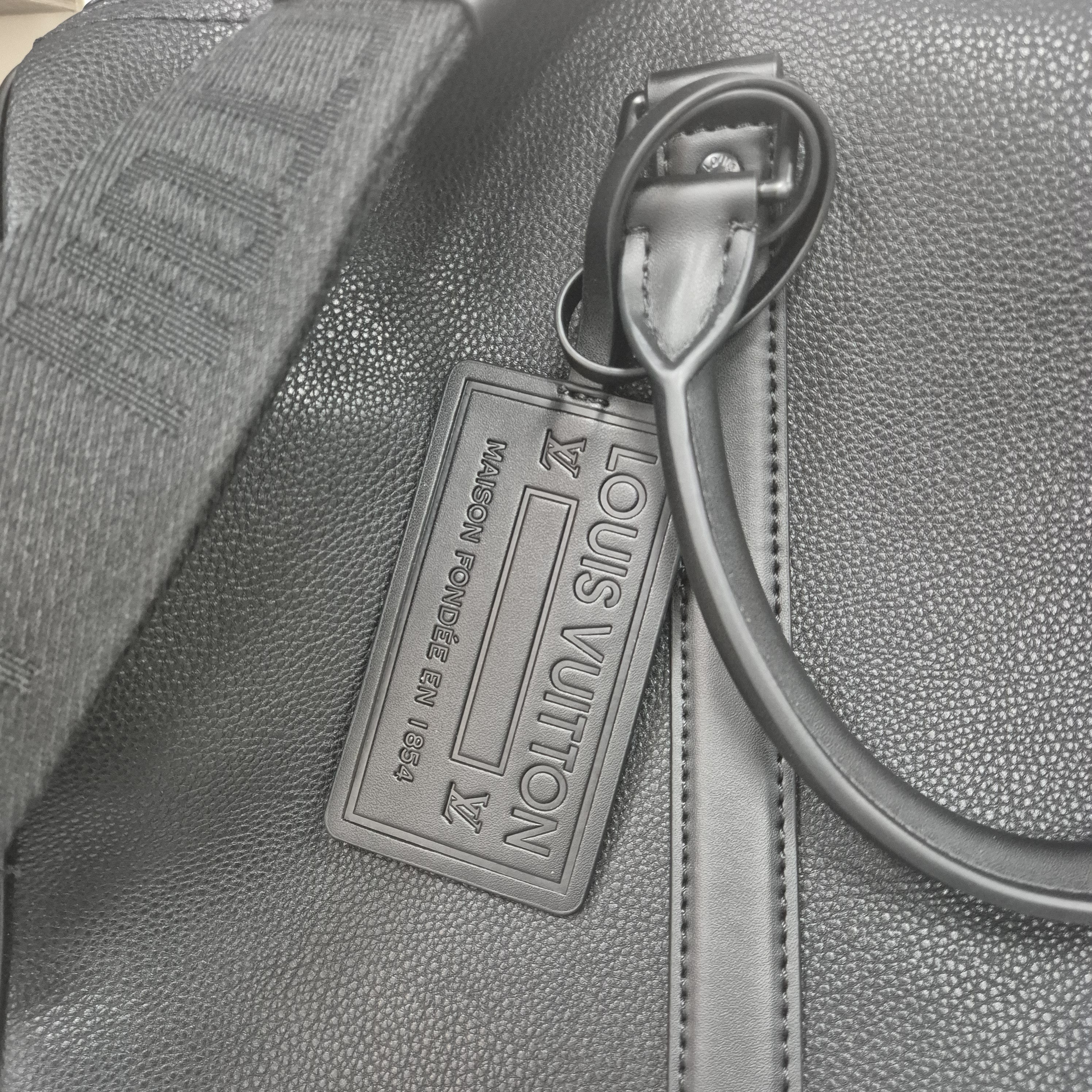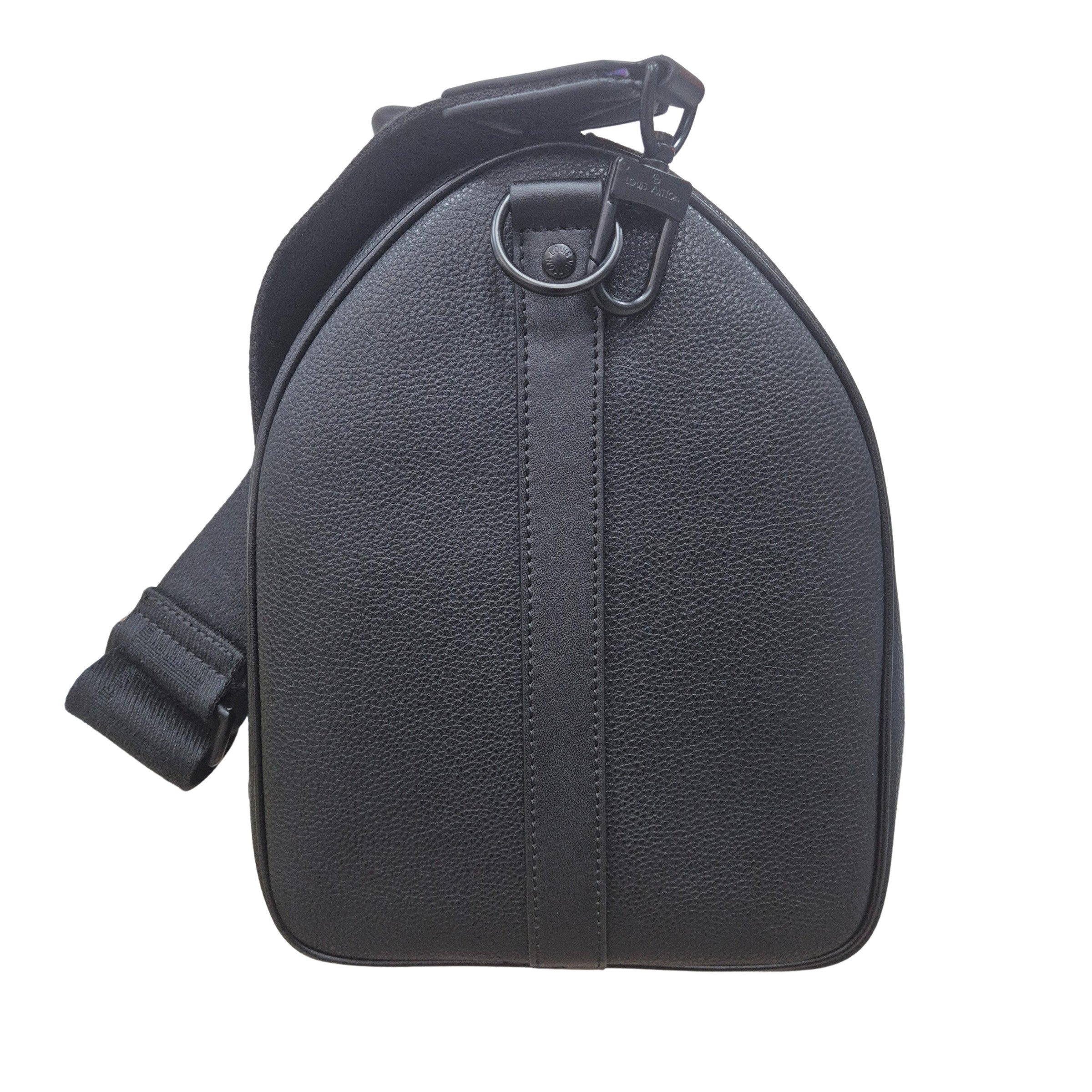 Ce sac Keepall emblématique est confectionné en cuir LV Aerogram, un matériau d'exception qui rend hommage au savoir-faire maroquinier Louis Vuitton. Le cuir de vache ultra-fin noir et élégant est rehaussé de détails inspirés par l'univers du voyage de la Maison, tels que le porte-adresse en cuir et la bandoulière jacquard signée.