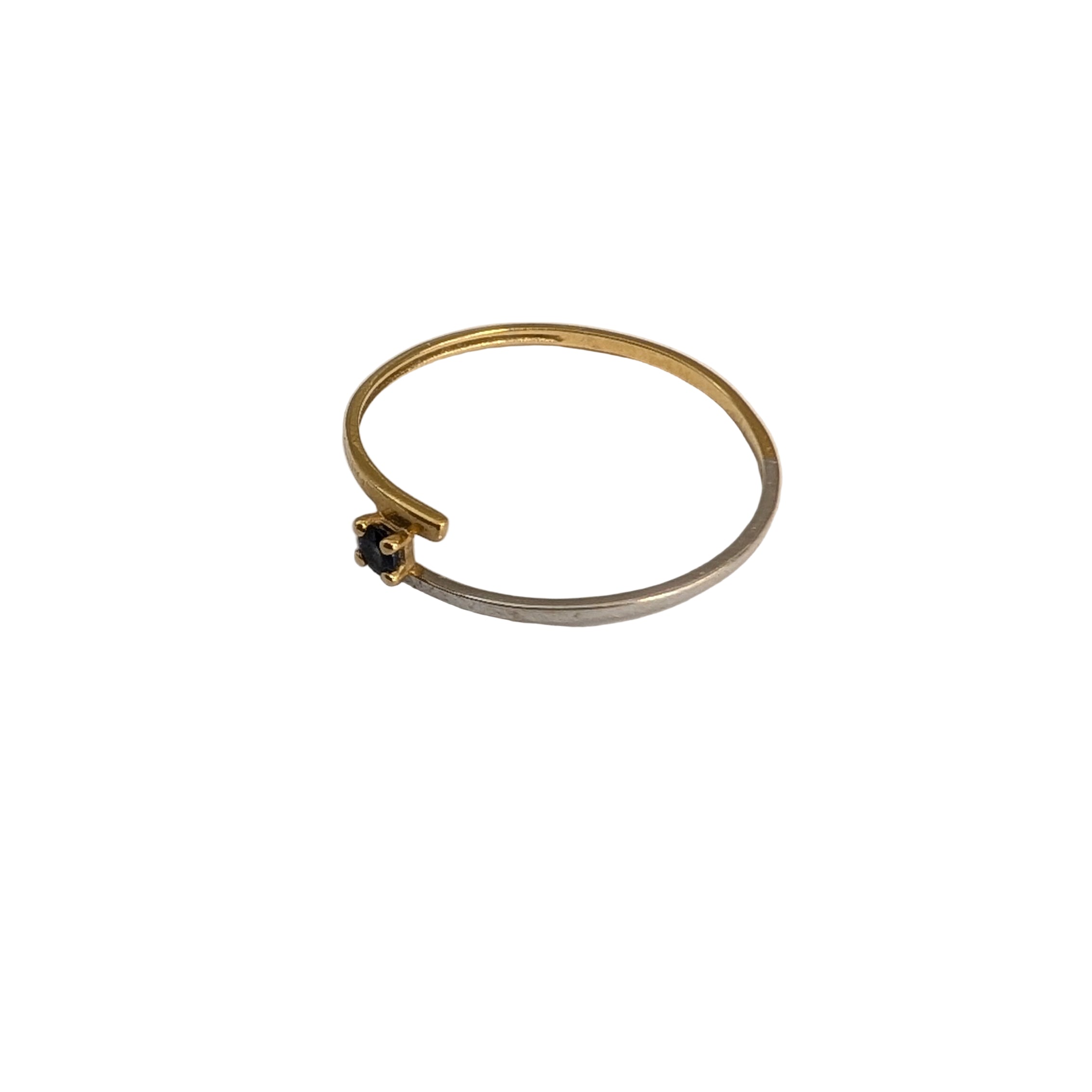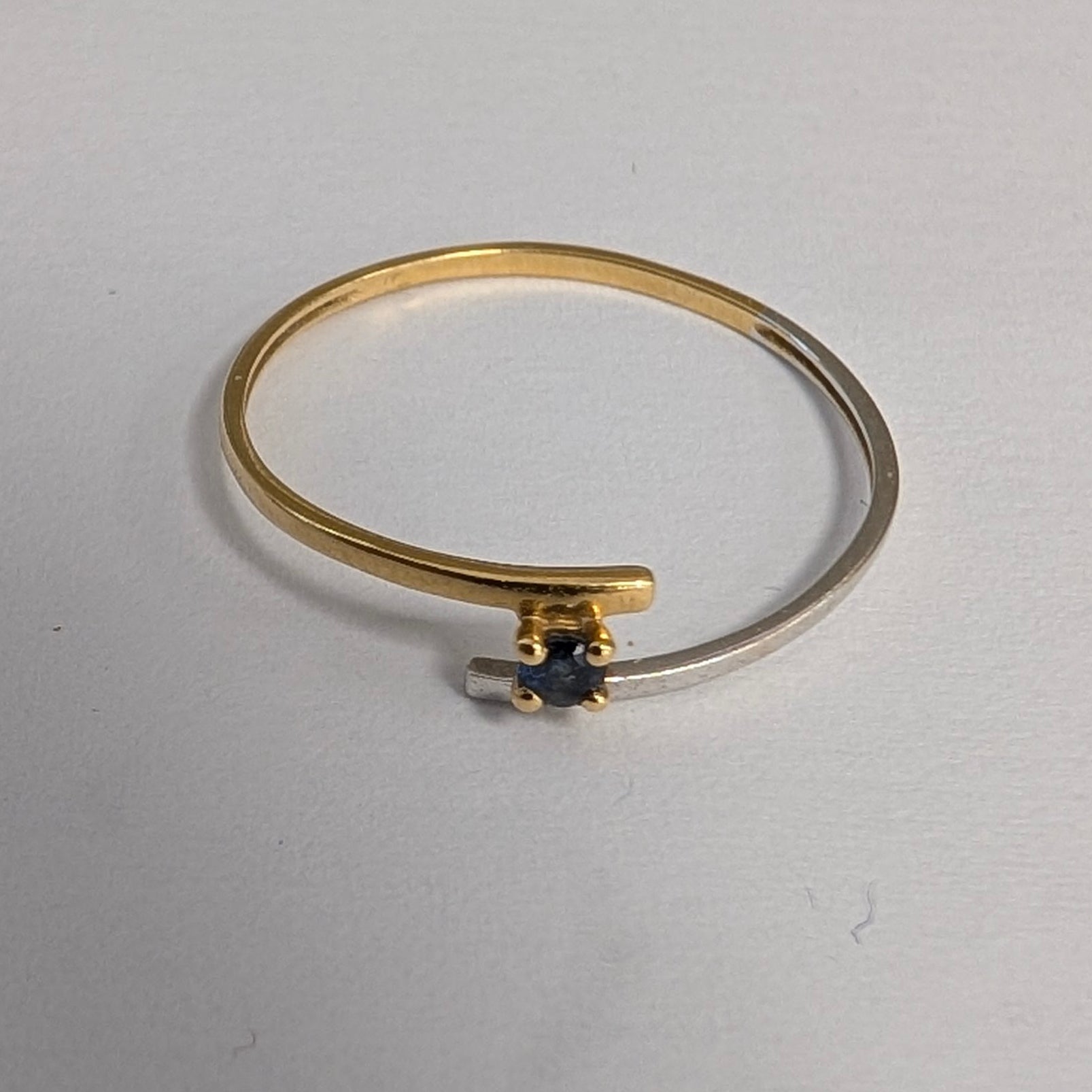 Cette bague solitaire en or jaune et or blanc 750/1000, poinçonnée 750, affiche un poids de 0,63 g et une taille 55. Elle est agrémentée d’un oxyde de zirconium naturel et se présente en bon état.
