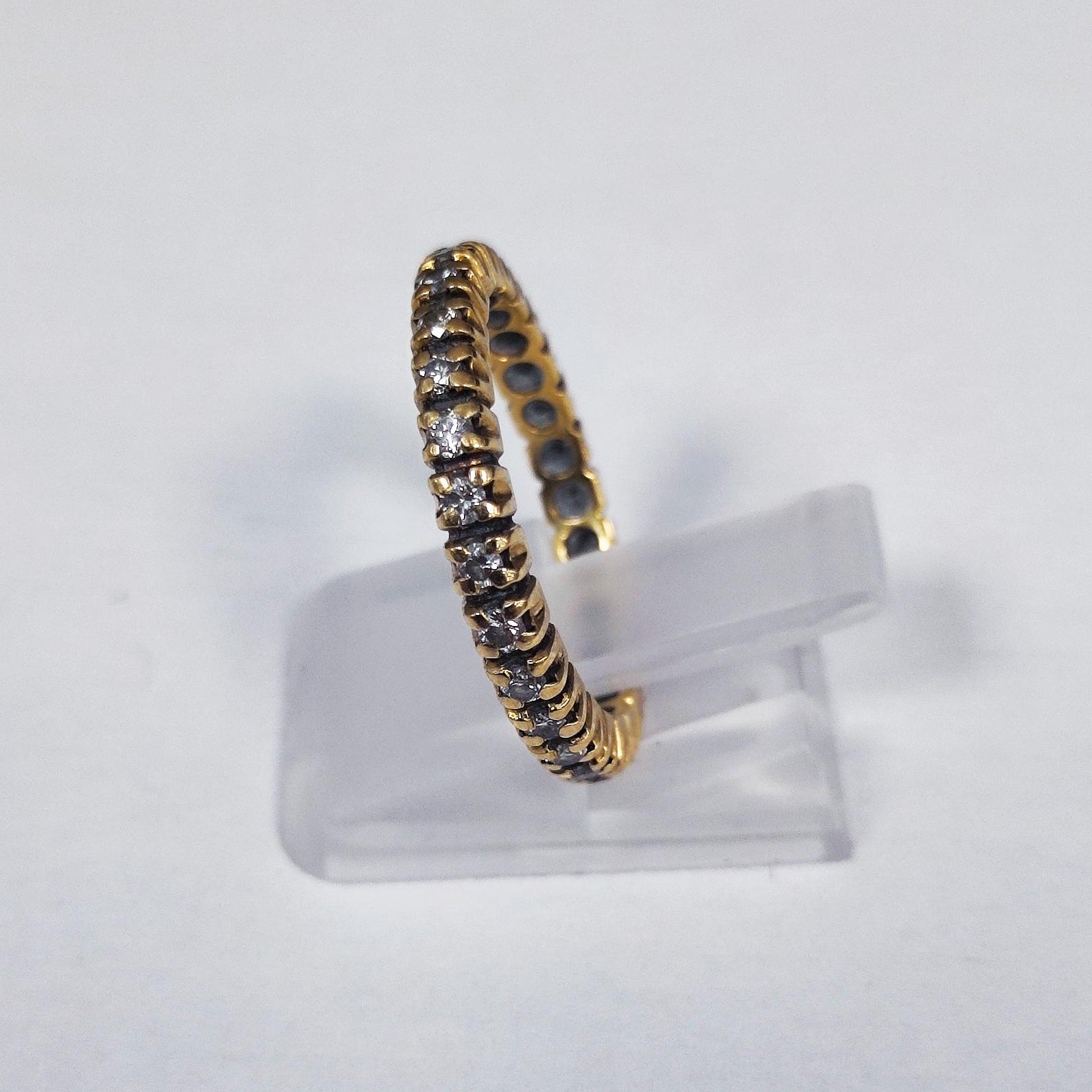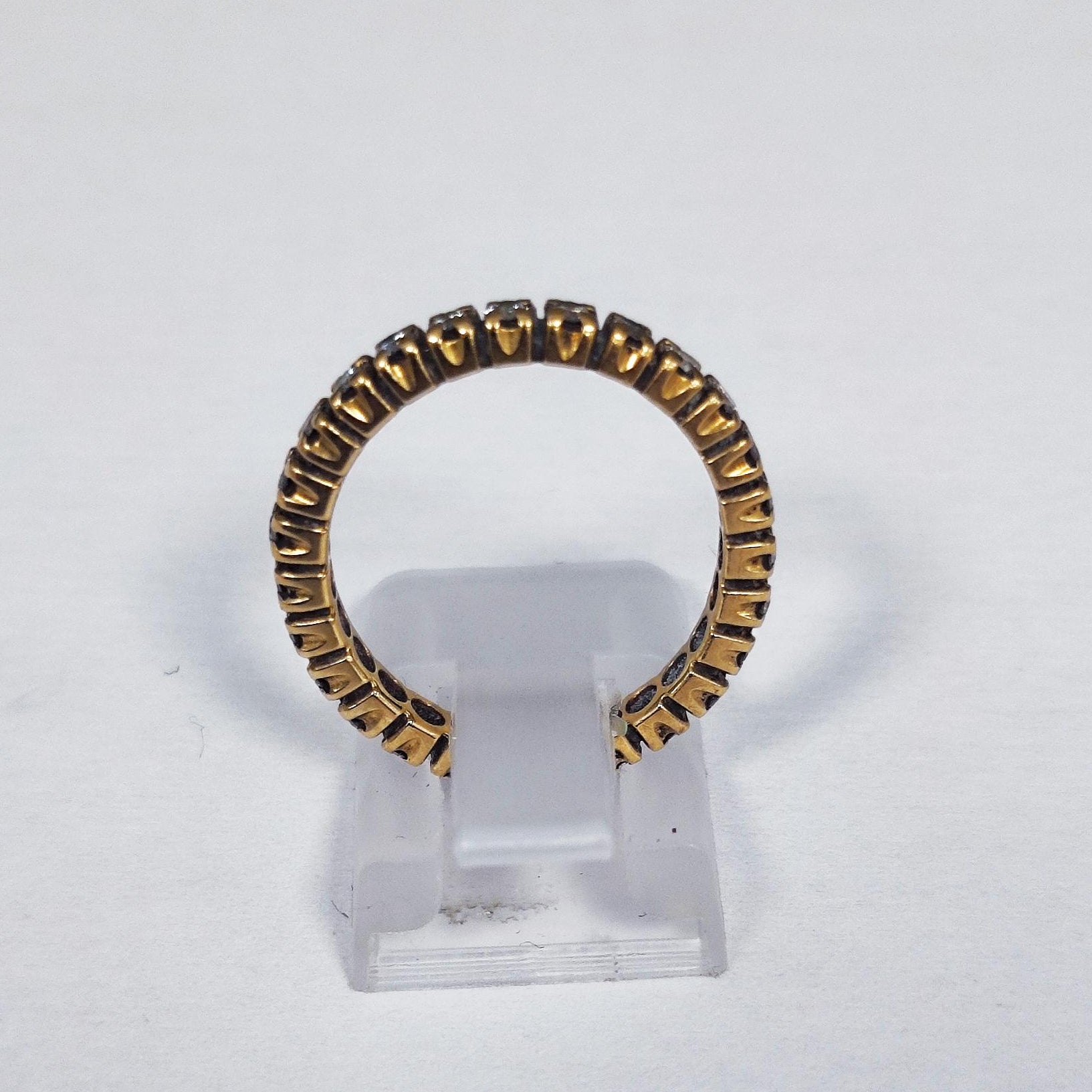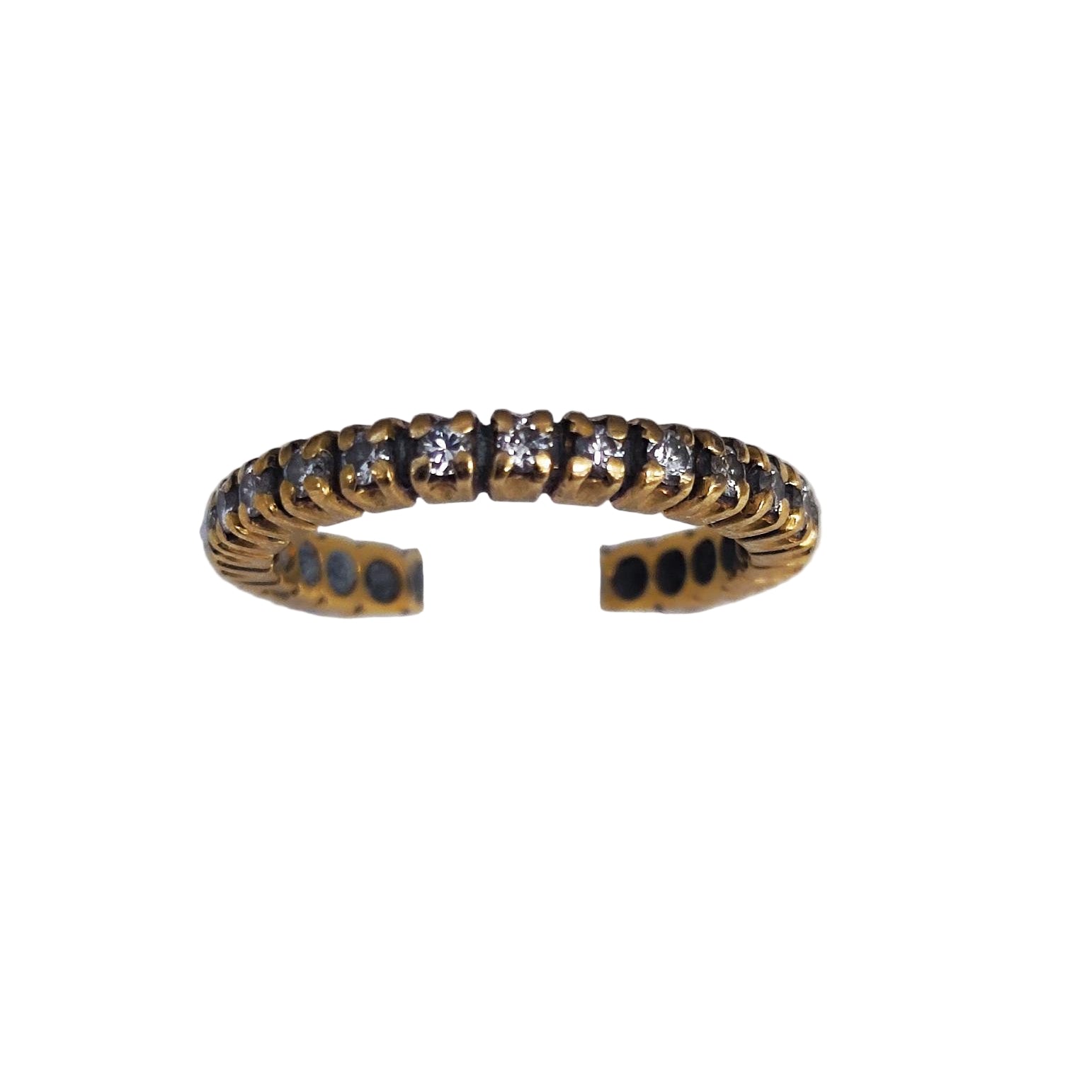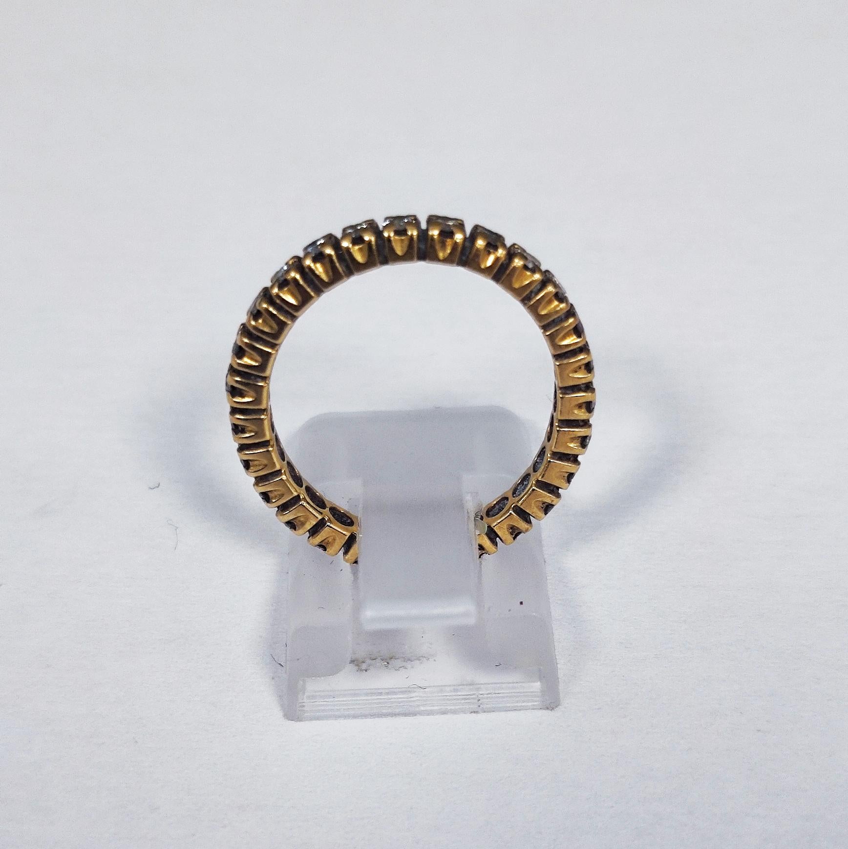 Bague en or jaune 750/1000, poids 3,18 g, poinçonnée 750. Sertie de 26 diamants de 0,01 ct chacun, formant un tour complet scintillant. Taille 51, en bon état. Un bijou lumineux et intemporel, parfait pour un éclat quotidien.