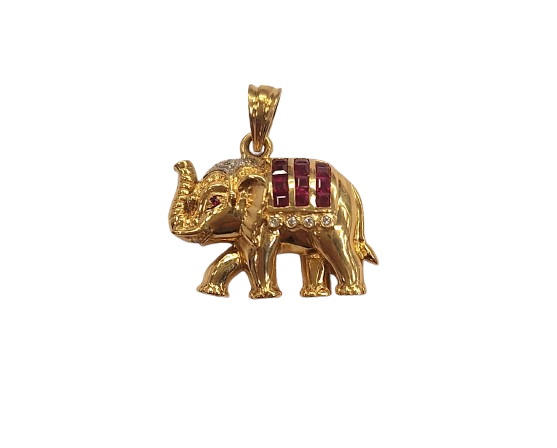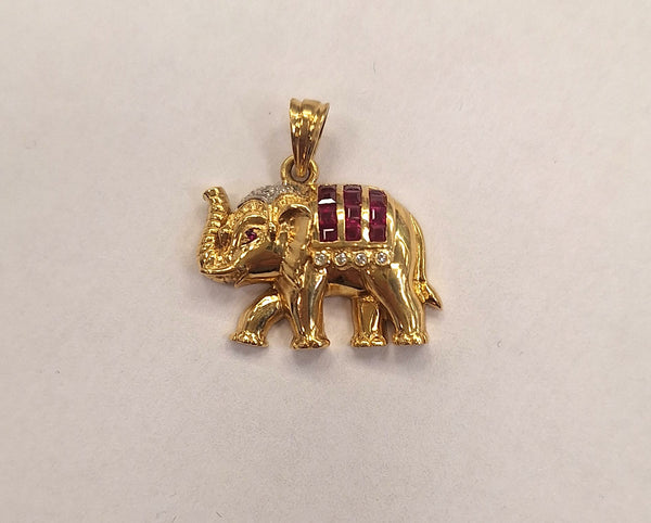 Pendentif Éléphant Or Jaune 18K Diamants Rubis