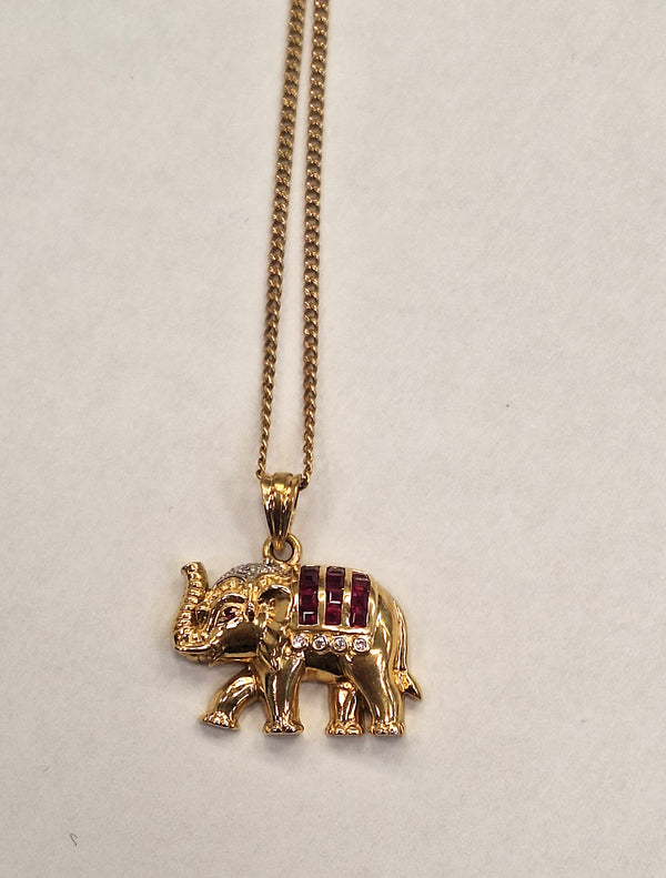 • Pendentif Éléphant Or Jaune 18K Diamants Rubis