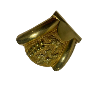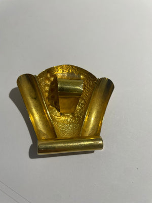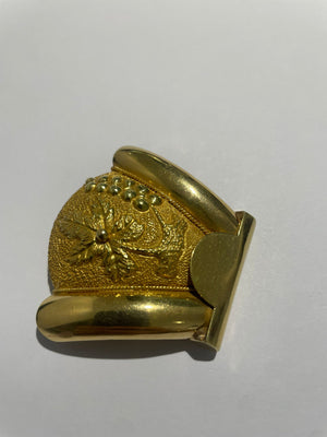 Pendentif en or jaune 18 carats (750/1000) affiche un design généreux avec une hauteur de 4,5 cm, une largeur de 5,5 cm et une épaisseur de 1,5 cm. Il pèse 19,95 g. Présenté en très bon état.