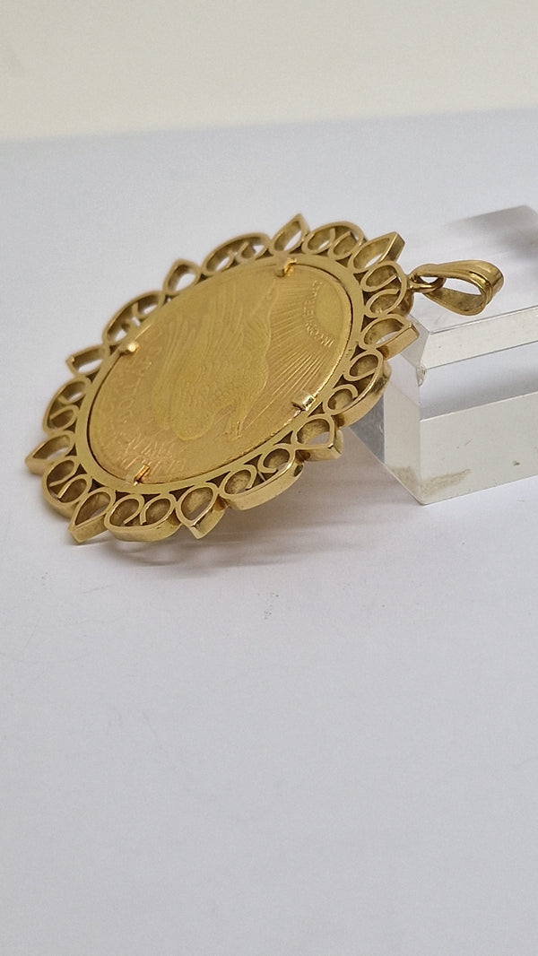 Laissez vous succomber par ce Ravissant Pendentif Porte Pièce OR 18 carats (750/1000) avec sa pièce 20 dollars de 1927 OR 22 carats (916/1000).