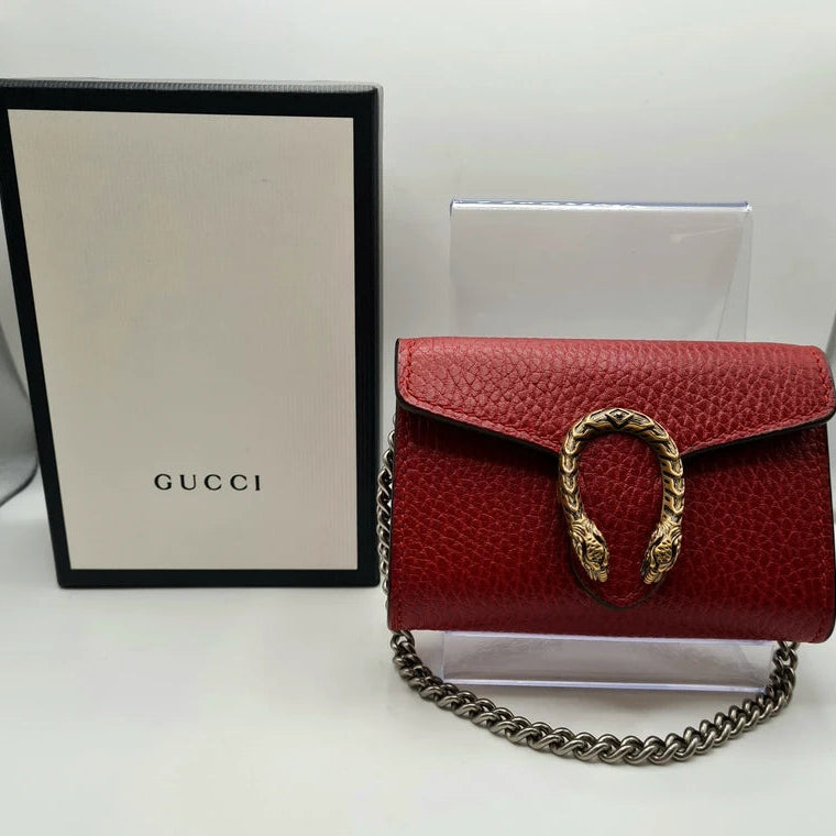 Le porte-monnaie Gucci Dionysus en cuir rouge séduit par son design iconique et la qualité de sa fabrication. Réalisé en cuir haut de gamme, il offre une finition soignée et une excellente tenue dans le temps.