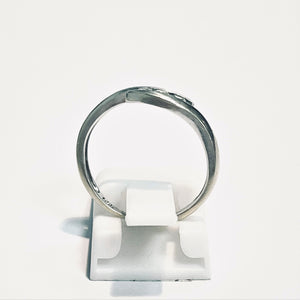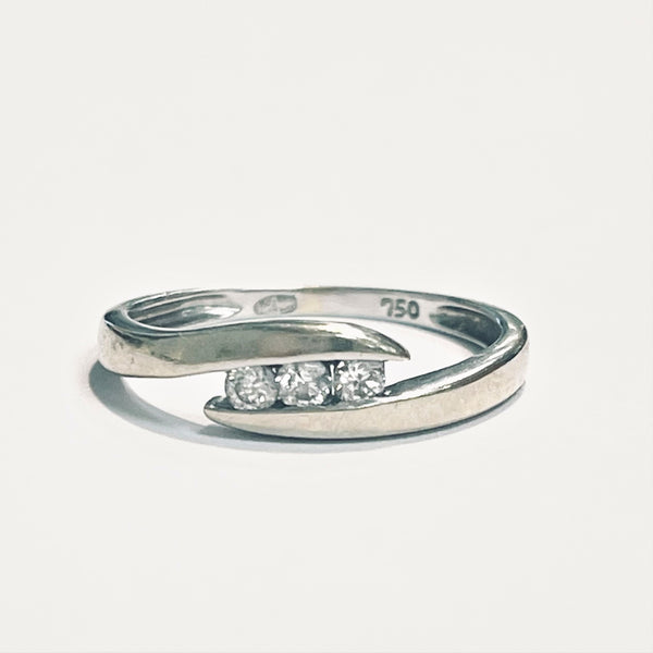 Très jolie bague en or blanc sertie de 3 diamants 0.02 carats