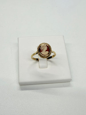 Bague camée en or jaune 18 carats (750/1000), poinçonnée Tête d'Aigle. Avec un poids léger de 2,27 grammes et une taille 54, elle offre un design délicat et sophistiqué, idéal pour un port confortable. Sans pierres, son allure classique en fait une pièce intemporelle, parfaite pour rehausser votre collection de bijoux. En très bon état, cette bague est un choix raffiné pour toutes les occasions.