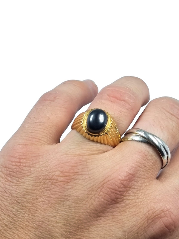 Très belle chevalière homme , de taille 62, elle se mariera avec tous les styles vestimentaires. Agréable à porter, sa pierre grise est sa touche de modernité.