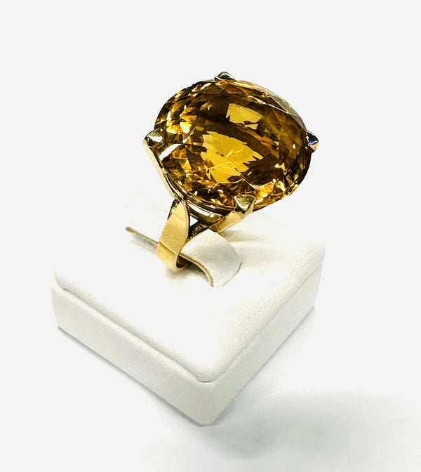 Magnifique bague en or 18k avec une citrine de 2cm de diamètre et 1 cm de hauteur.