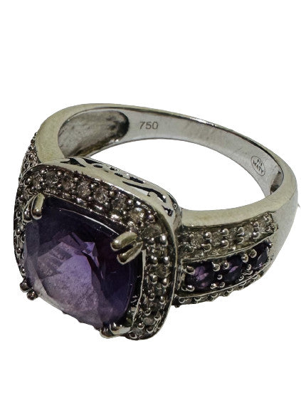 Ravissante bague en or blanc 750 avec magnifique améthystes ornés de 46 diamant