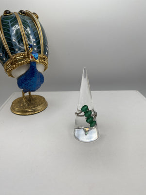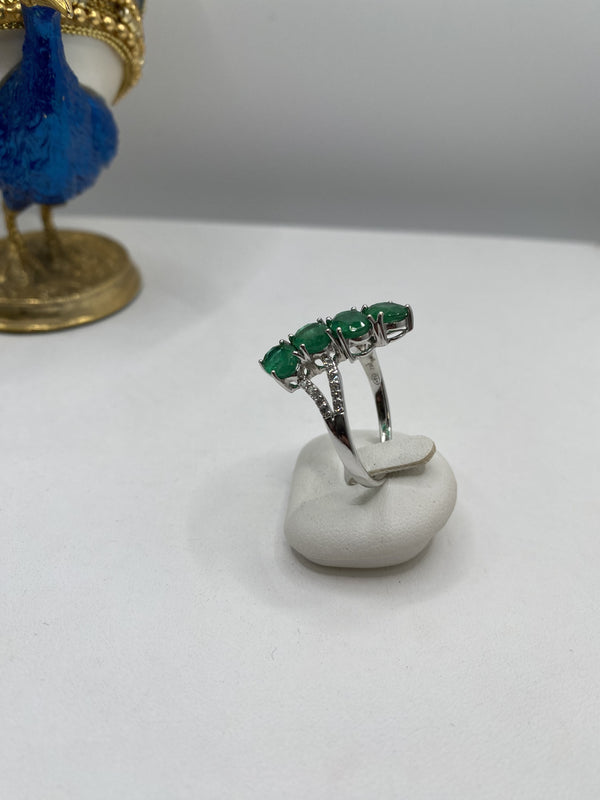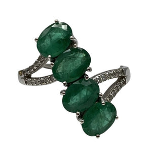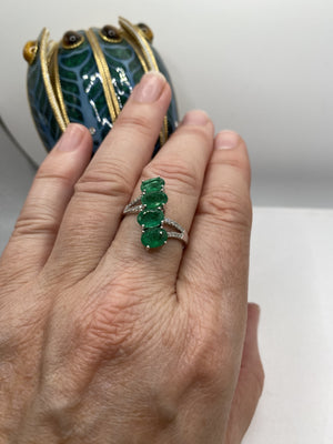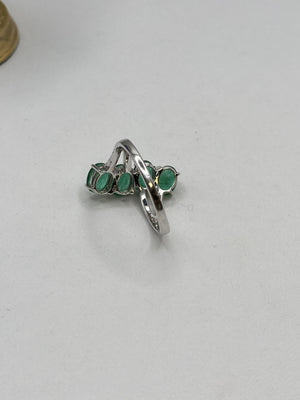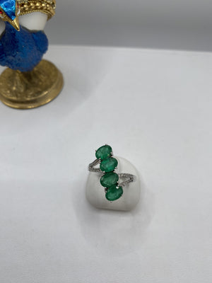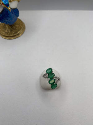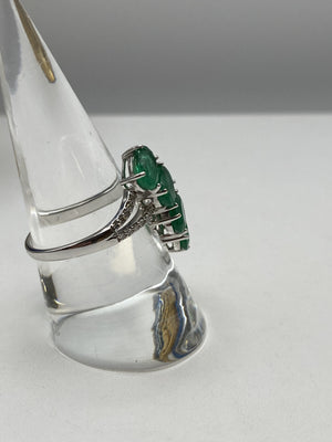 Bague très originale avec ses émeraudes d’un très beau vert et ses brillants